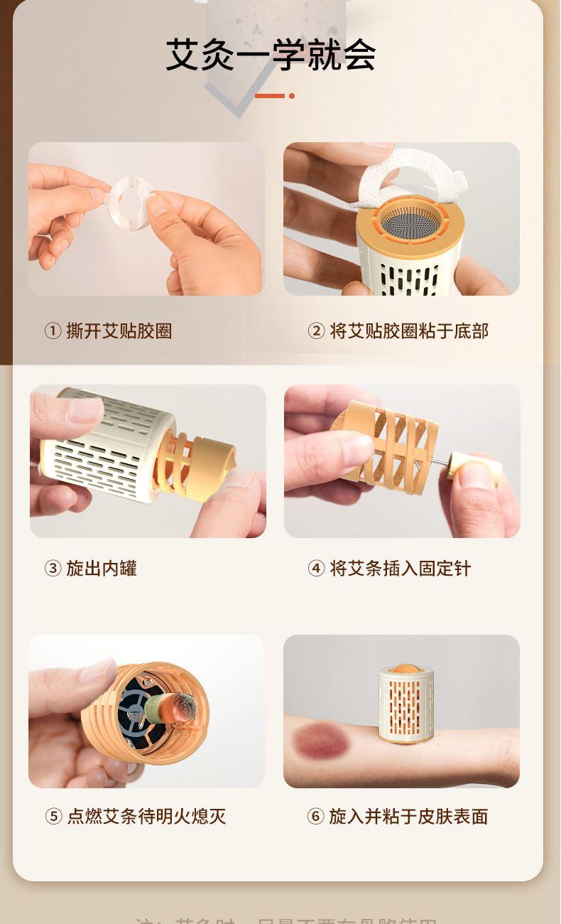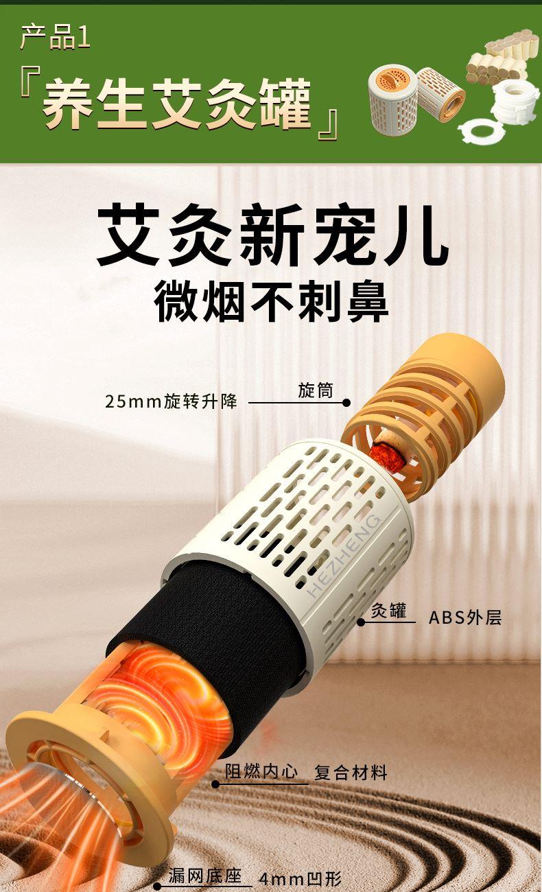 和正艾灸罐,根据艾灸理念设计而成,产品设计小巧,可循环使用;明火悬灸,升降调温,阻燃材质,多重保护,艾灸更安心;选用地道艾草精制而成的艾柱,艾香醇正,热力温润。