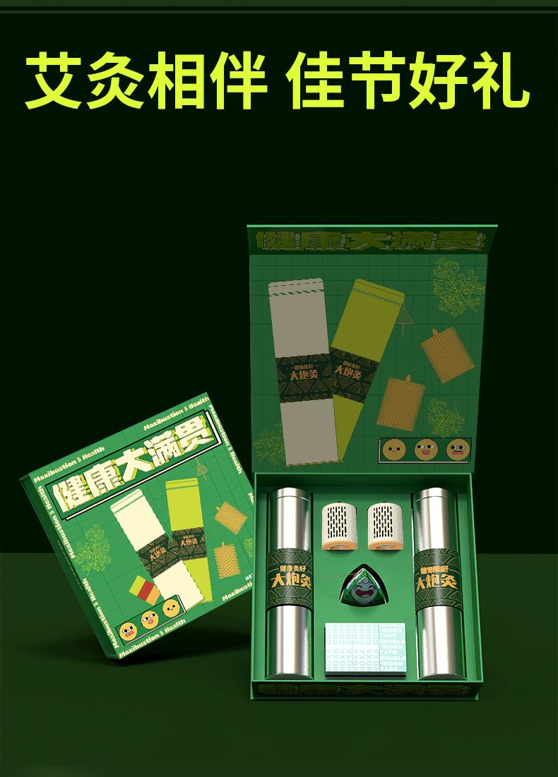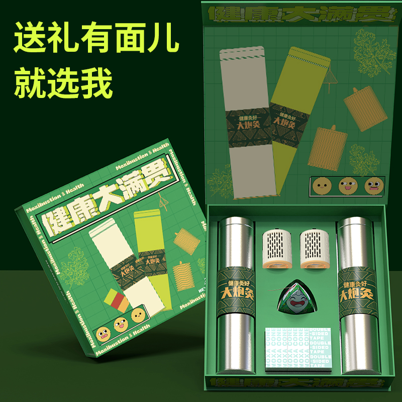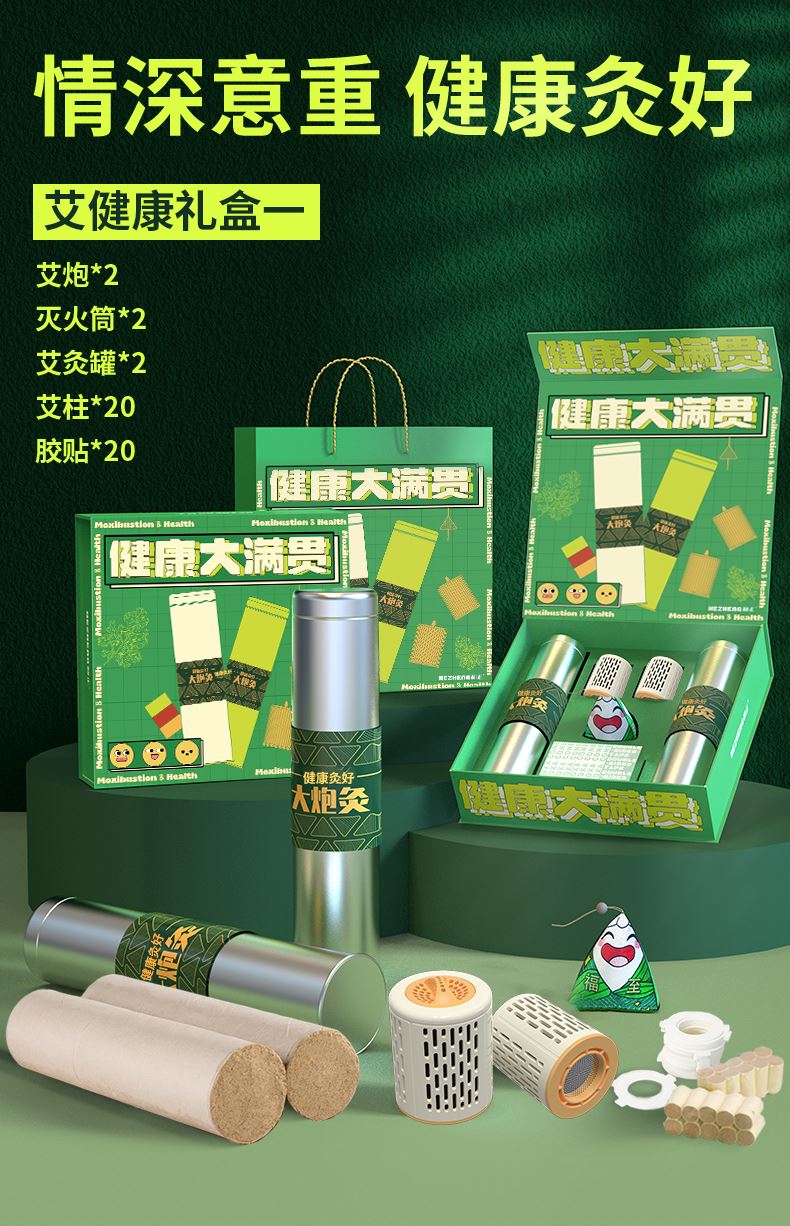 这是一款组合式健康礼盒,由2组艾炮+2个艾灸罐组成: