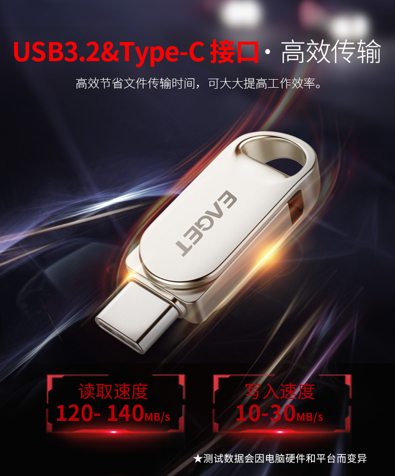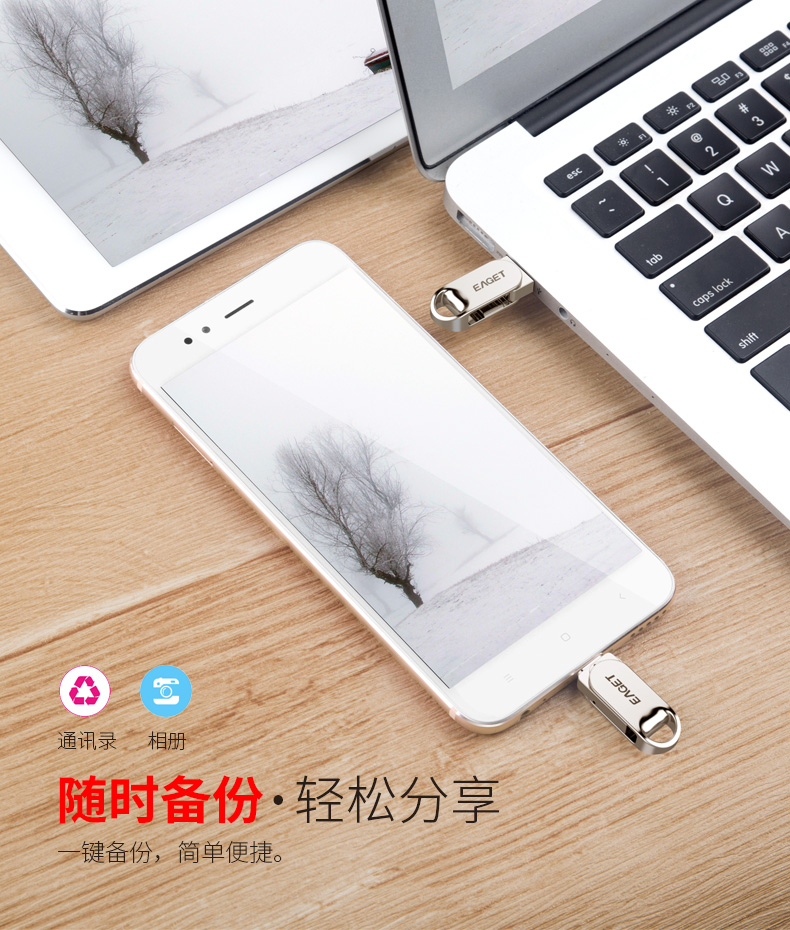 (EAGET)忆捷HT10手机电脑多用旋转优盘金属128G