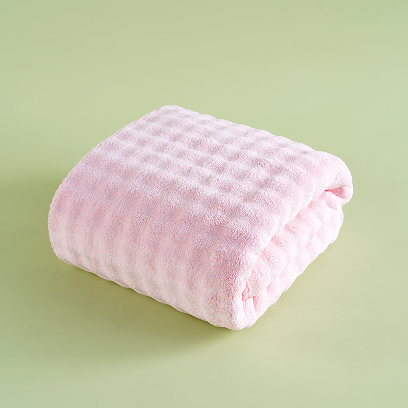 产品型号:泡泡绒-1 规格:毯子90*170cm 克重:550g 材质:微米纱 颜色:随机 组装形式:1毯子 采用微米纱工艺,纤维细度仅为头发1/280,吸水量为纯棉产品的7倍,手感绵柔,温暖的莫兰迪色系带给你不仅仅是视觉感官的温柔体验,更重要的是回归内心的平静与笃定