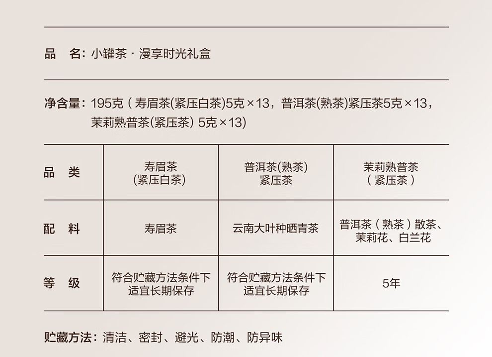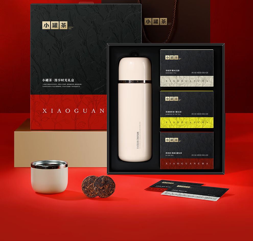 轻奢商务茶叶pin牌-小罐茶 小罐茶全国线下2000+实体门店 小罐茶 x 敢保真(产地保真、年份保真、安全保真) 轻奢档次商务社交送礼就送小罐茶 慢焖三味好茶 更香醇更好喝 小罐茶 · 漫享时光礼盒 全国顺丰包邮 5克x39饼茶 | 470ml奶油白焖杯 | 省心焖泡套装 送谁都不出错的贵礼 茶饼净含量:195克(寿眉茶(紧压白茶)5克x13饼,普洱茶(熟茶)紧压茶5克x13饼,茉莉熟普茶(紧压茶)5克x13饼) 一盒茶礼,一笔生意,商务礼赠的品质之选 盒身打造专属现代派美学,质感矜贵。平衡美观与实用送一份心意茶礼,传递一种有品质的生活方式。