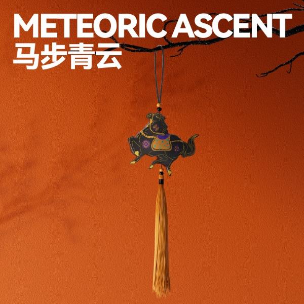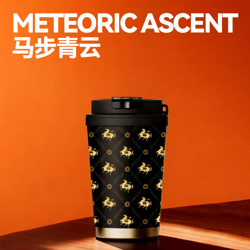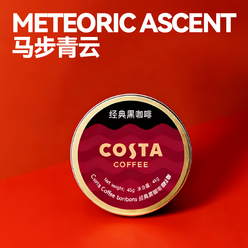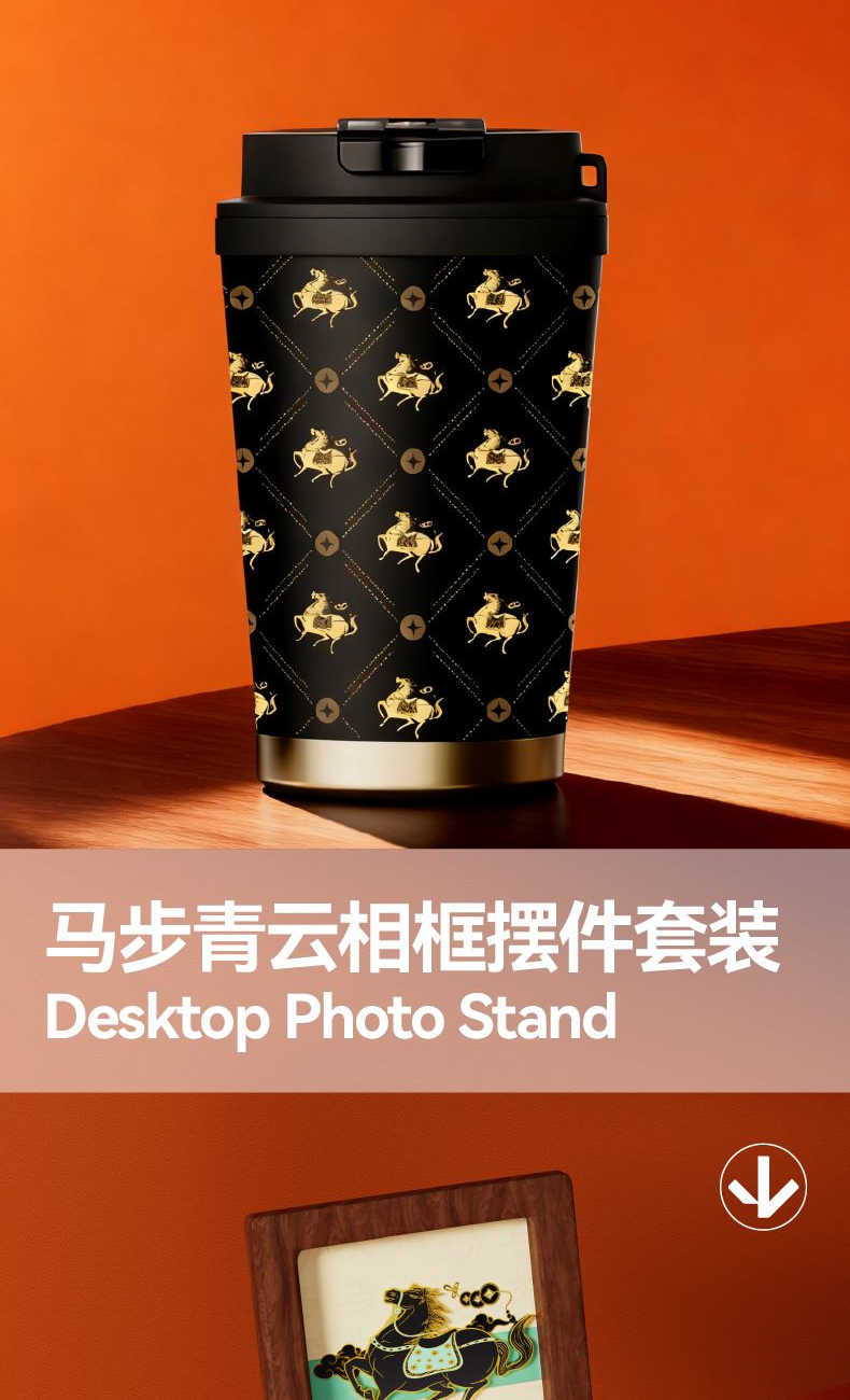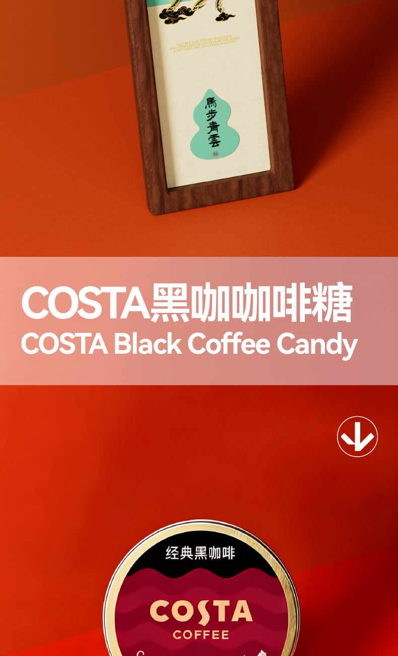 以汉唐骏马意象为骨,东方祥瑞纹样为韵,取意“行远自迩,步稳登云”。马身披流金鞍,踏祥云,象征青云之路;蝙蝠相随,暗合“福随马至”;古币缀饰,寓意财源载道。礼盒整体以中国红为基色,点缀以赤金、青绿,勾勒出古典雅韵与当代审美的交融。 杯盏描金,映照饮马江湖的胸襟,咖啡氤氲间,恰似人生百味沉淀后的澄明;马踏祥云相框,留白处可藏山河岁月,亦隐喻“心有所持,身自端行”。 赠此礼,愿君步履生风,志在千里;心有乾坤,步上青云。 礼盒配置 精装礼盒&手提袋 x1、喜式·精瓷咖啡杯 x1 COSTA黑咖咖啡糖x1、相框摆件x1、磁吸珐琅徽章x1 福马佑安·香囊x1、COSTA挂耳咖啡x4、贺卡x1