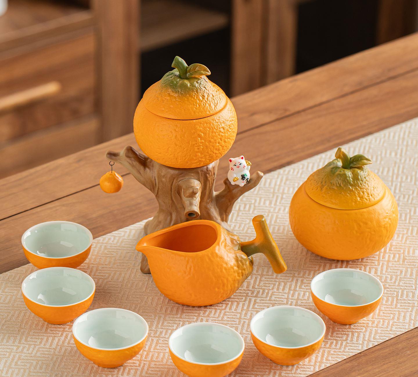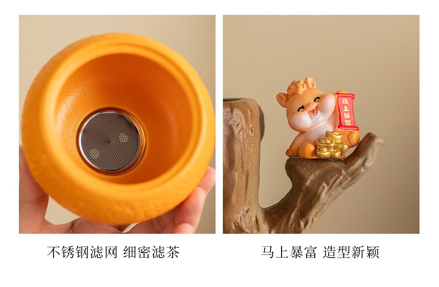 泡茶台:20.5*15.5厘米 220ml 品茗杯:6.5*3.2厘米50ml 茶海:14*7.5厘米200ml 茶叶罐:11*10厘米300ml 造型形象生动,寓意美好,天然矿物釉,高温烧制无铅镉 ,配置齐全,商务实用,搭配礼盒包装,自用赠礼两宜,用陶瓷的温润,调和生活的棱角。