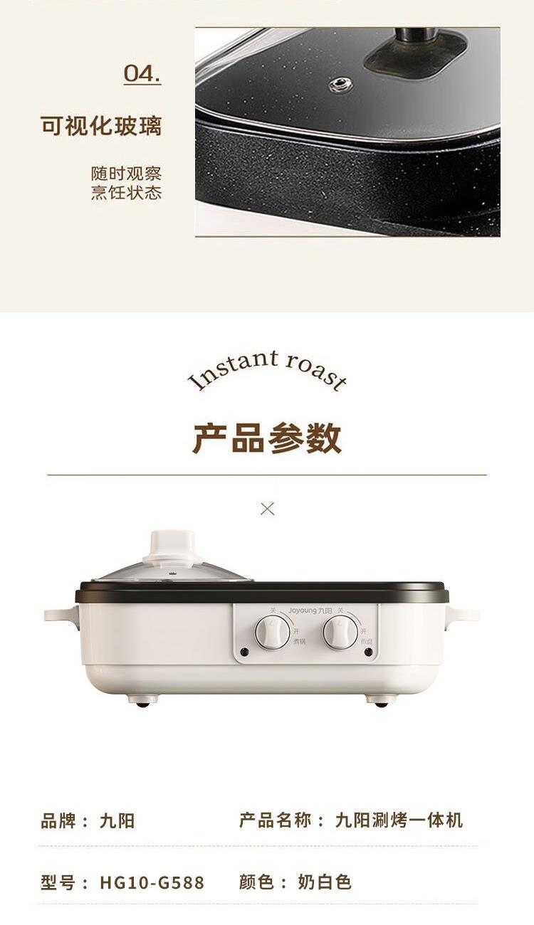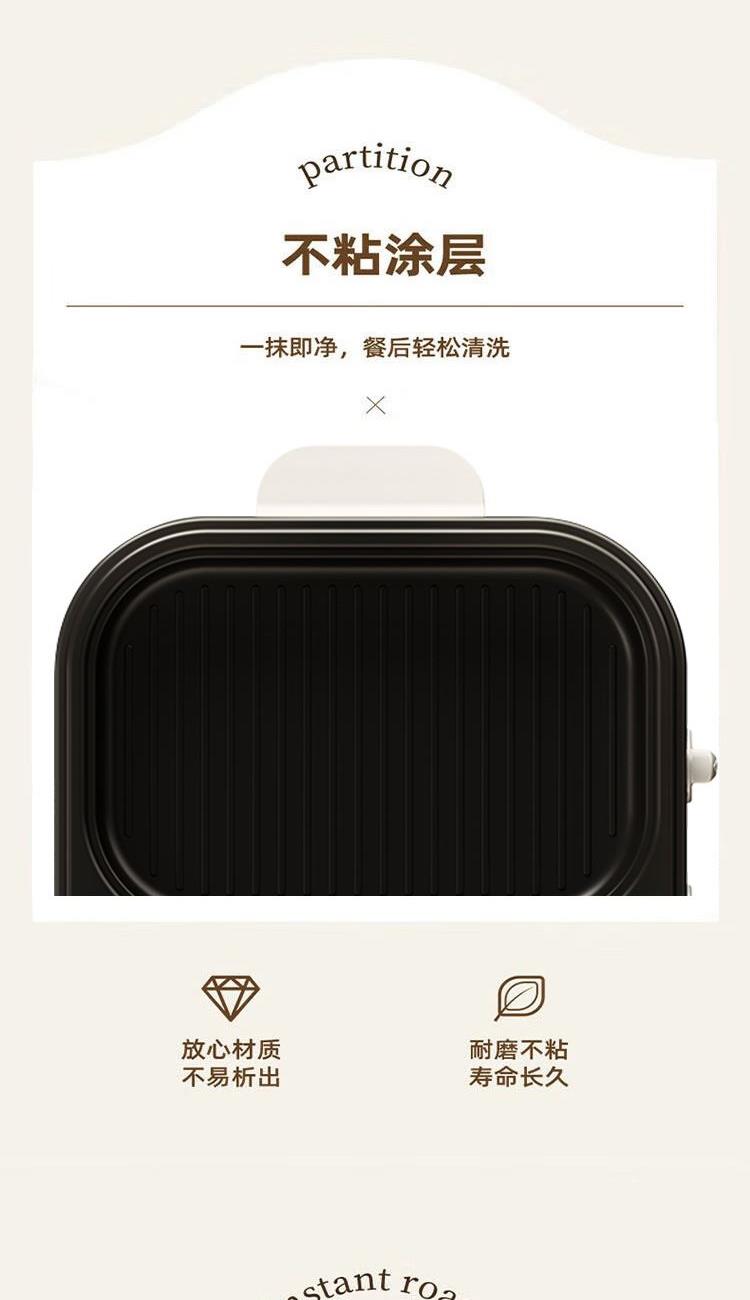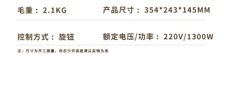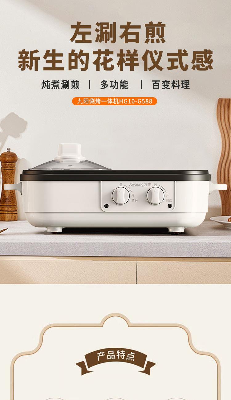 小身材多用途,1L火锅容量,可煎可涮可煮 1300W大火力,火锅650W,煎锅650W 分区独立控温,更方便 不粘烤盘不粘锅,方便清洗