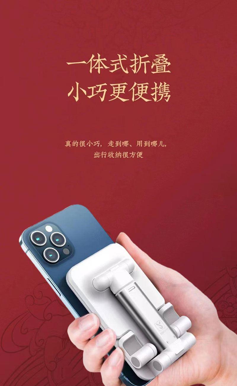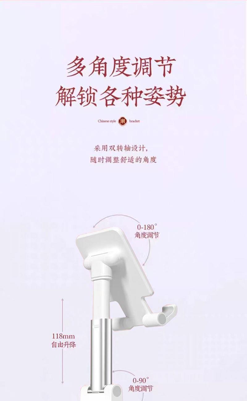 材质:ABS原料+铝合金属漆杆; 颜色:白色 产品尺寸(折叠后):110*66*27mm 财滚滚可伸缩折叠手机支架 自由伸缩高度可调 手机平板通用 稳固防滑不晃动