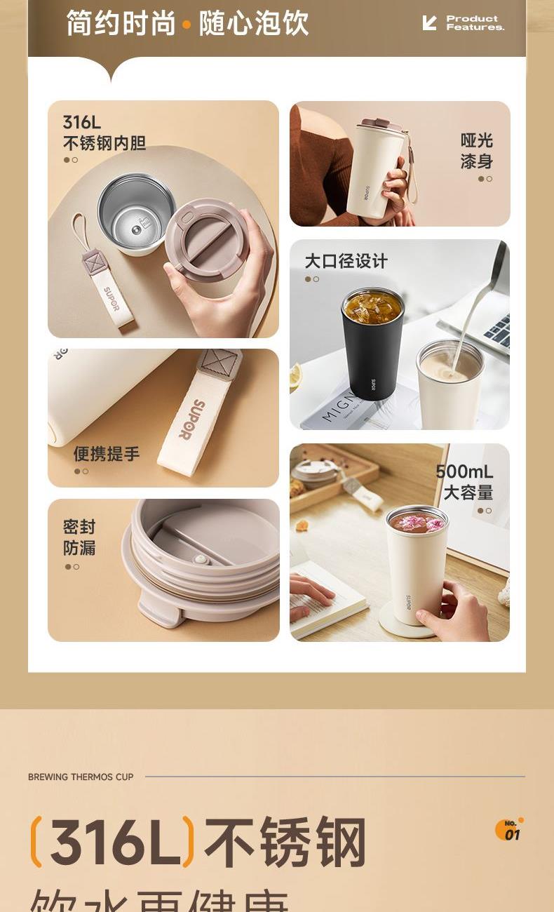 苏泊尔直饮泡饮保温杯(500ml)KCV50DW10