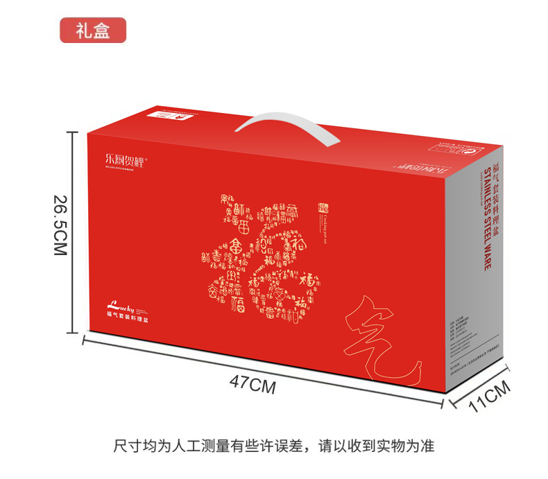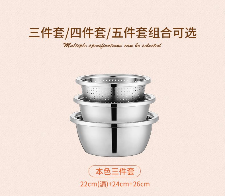 产品规格:20-22-24cm 产品材质:201不锈钢 彩盒尺寸:46.6*11*26.5CM 外箱尺寸: 93*48*55 cm 条 码:695940801846 “福”即幸福、福气。是人们对祥瑞、美好、吉祥寓意的统称, 寄寓人们对幸福生活的无限向往及美好祝愿。 在百姓心中“福”字是受欢迎、有影响力、广泛使用的文字, 春节期间也常以“福”到喜到做为家庭装饰的重要元素。 套装料理盆,采用的也是百姓日常用的料理套装, 可洗菜可和面可打蛋要拌菜等等,使用范围之广, 岁末无论是员工福利,活动促销等 ,都有较好寓意。