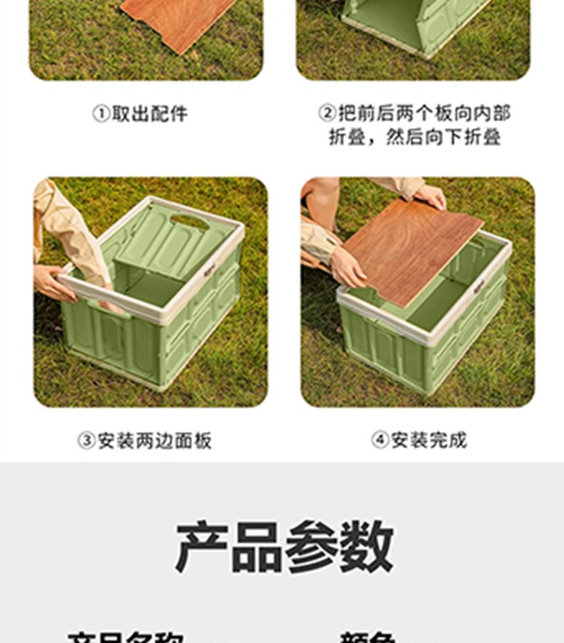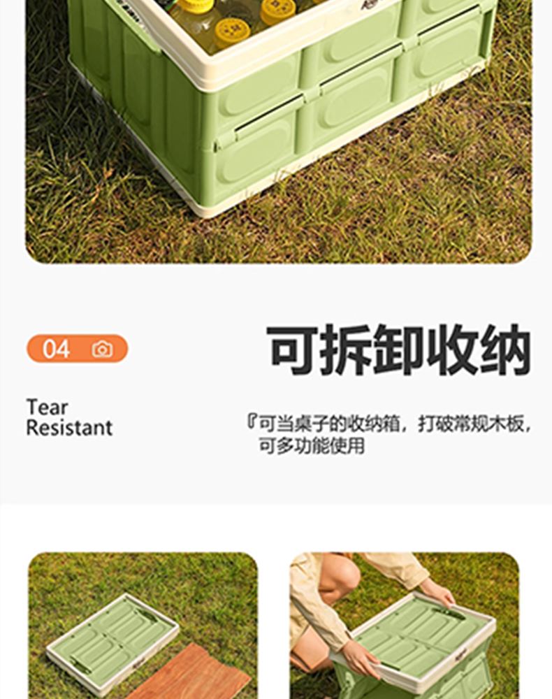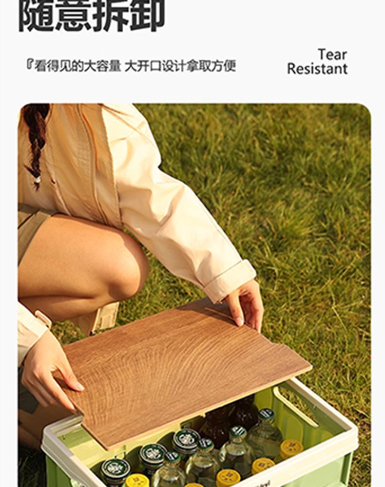 收纳箱:精选优质材料,搭配高强度复合木板,镂空提手设计,搬运省心省力,折叠设计,好收纳;一箱多用,户外居家储物均可;