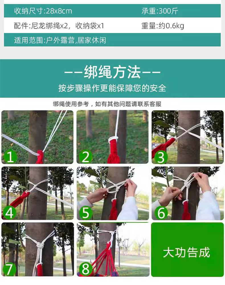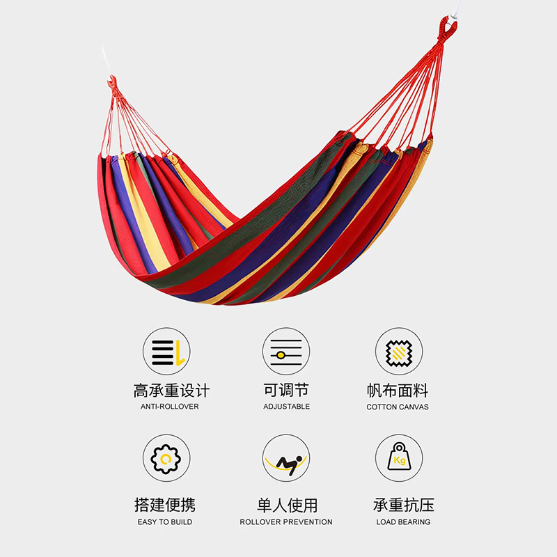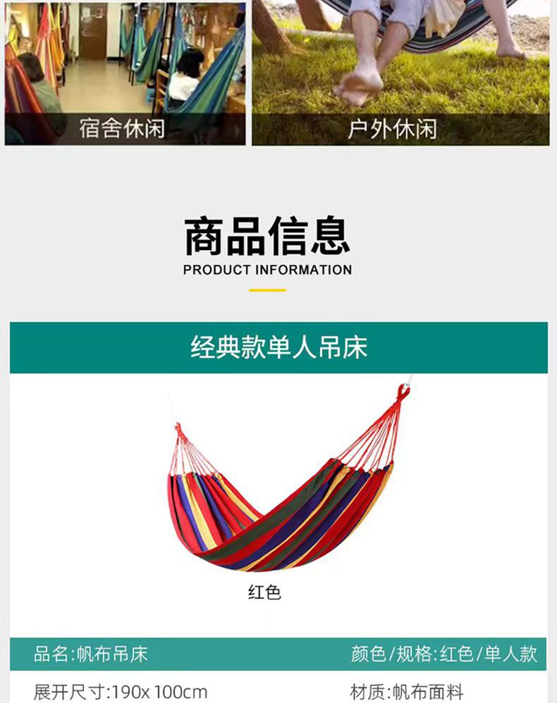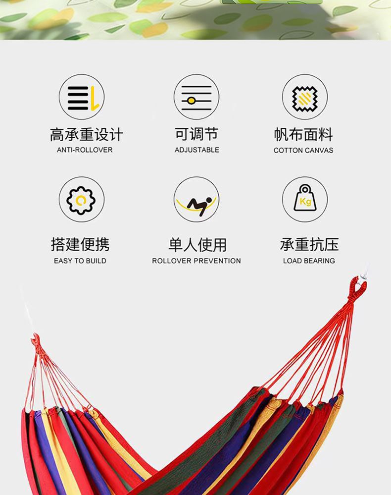 彩虹吊床:加厚帆布耐磨耐用,舒适透气,结实绳索承载升级,易折叠好收纳,携带方便;
