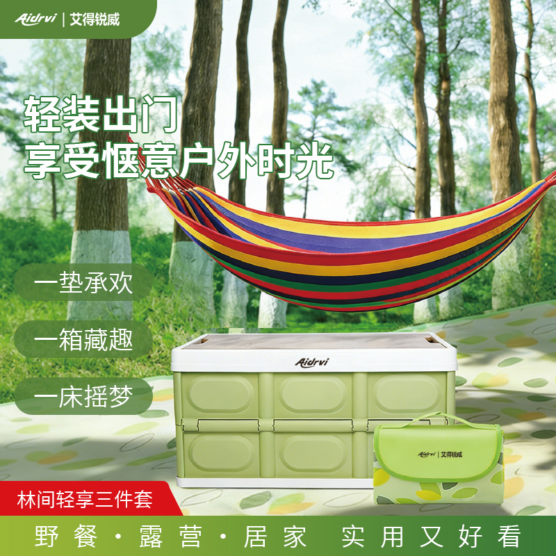套装组合:收纳箱+贵族野餐垫+彩虹吊床