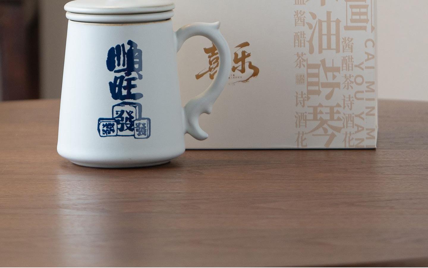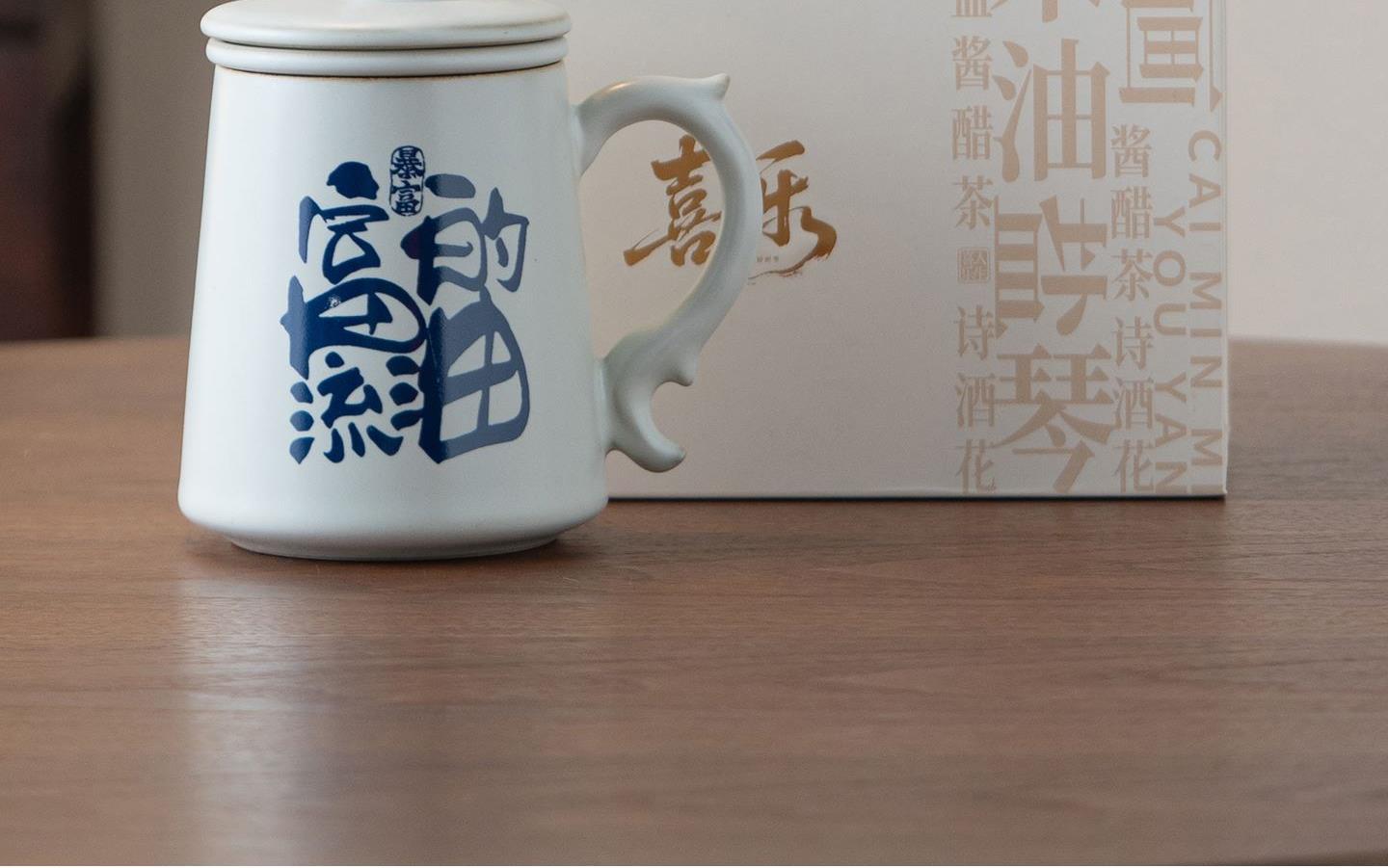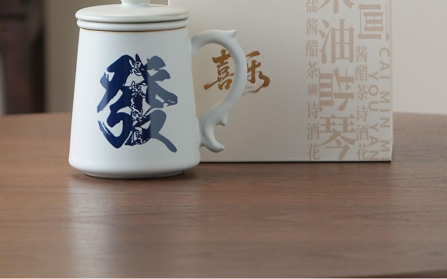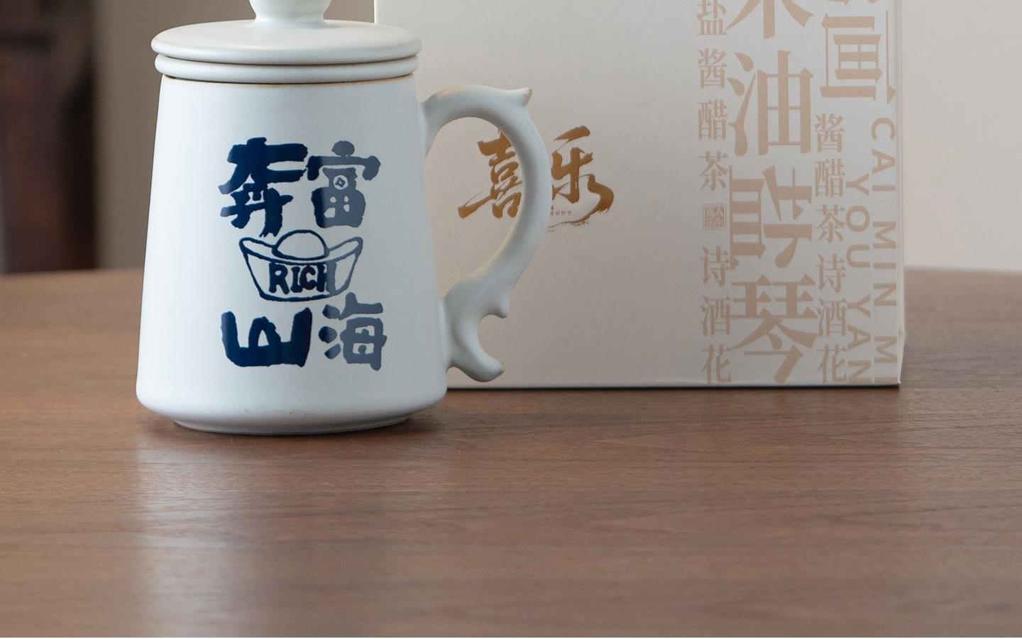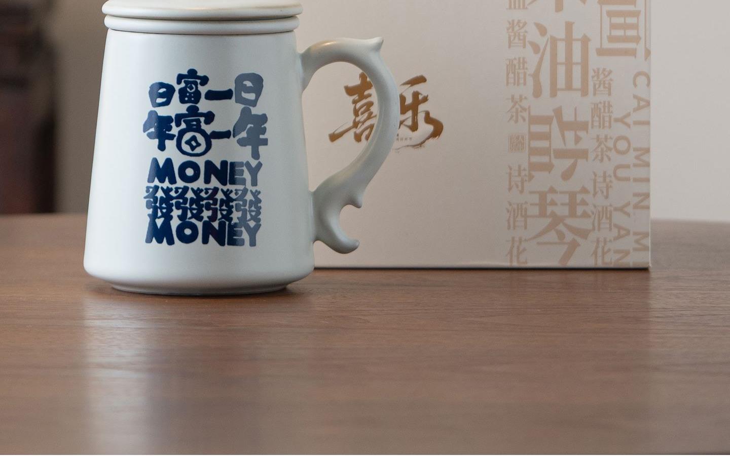 配置:办公杯*1,礼盒*1. 尺寸:办公杯长13cm高14.5cm容量450ml, 礼盒:长17cm宽12cm高19cm。 款式:暴富系列/马上有福系列。