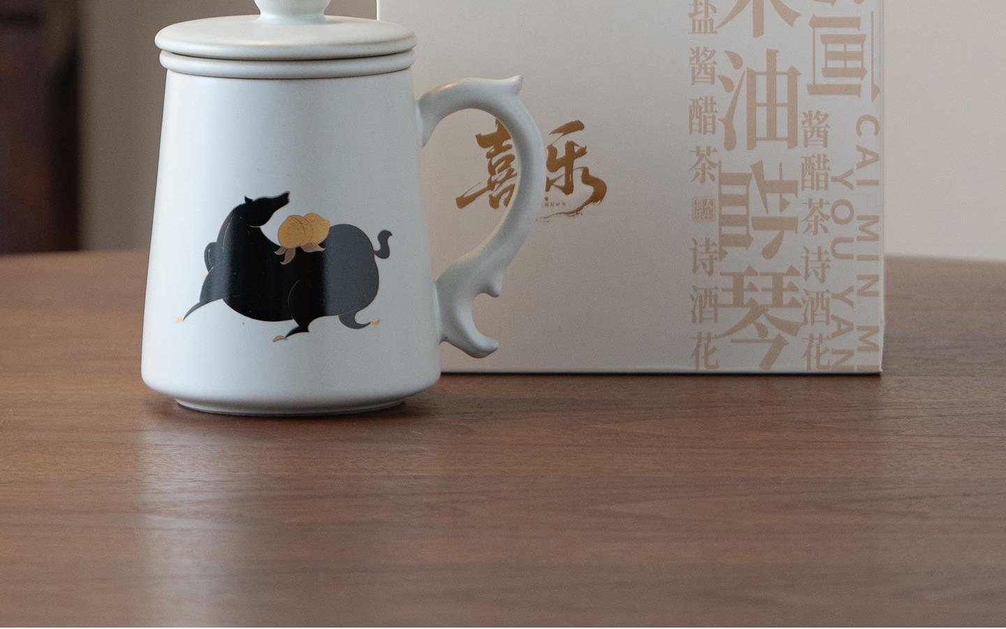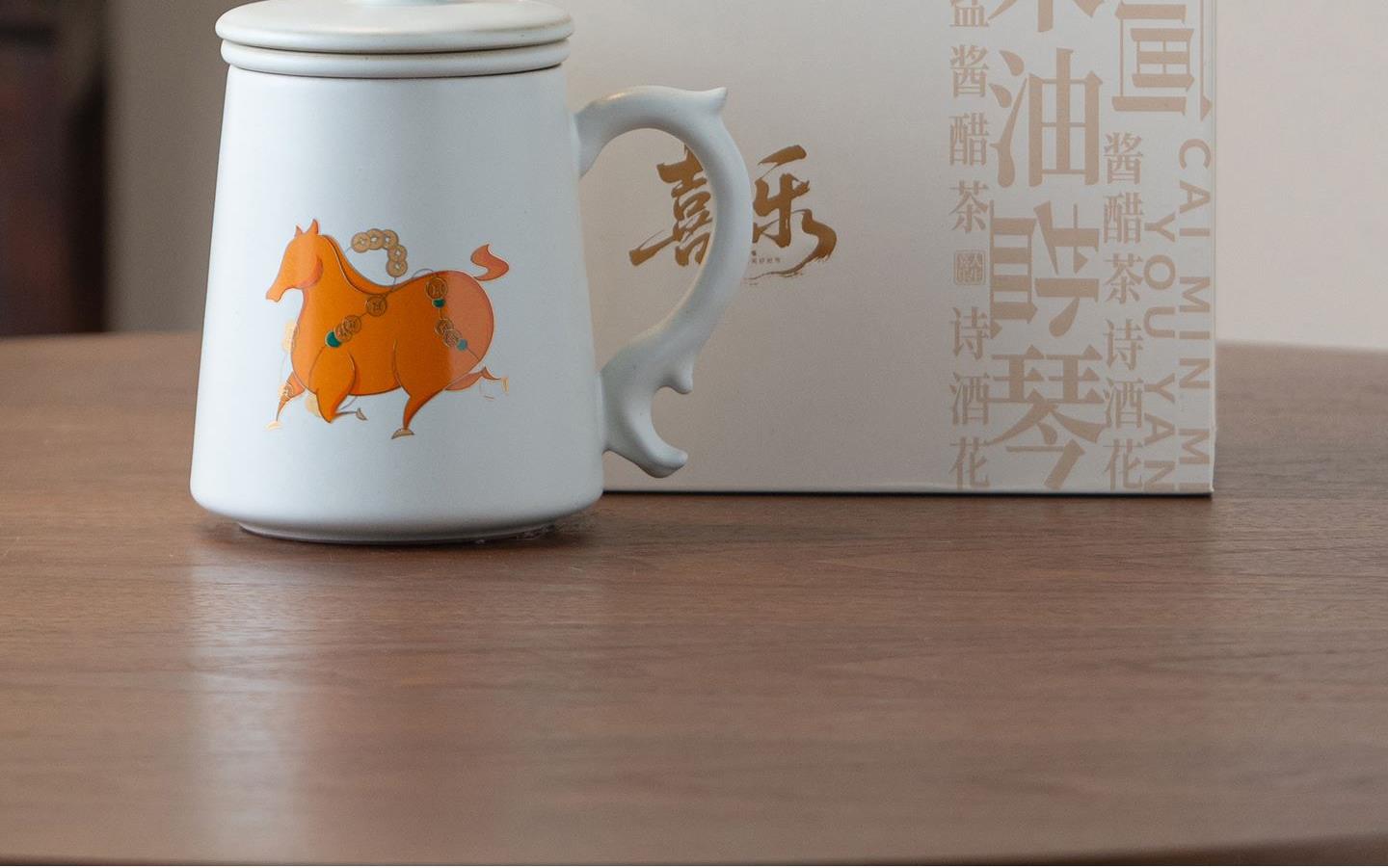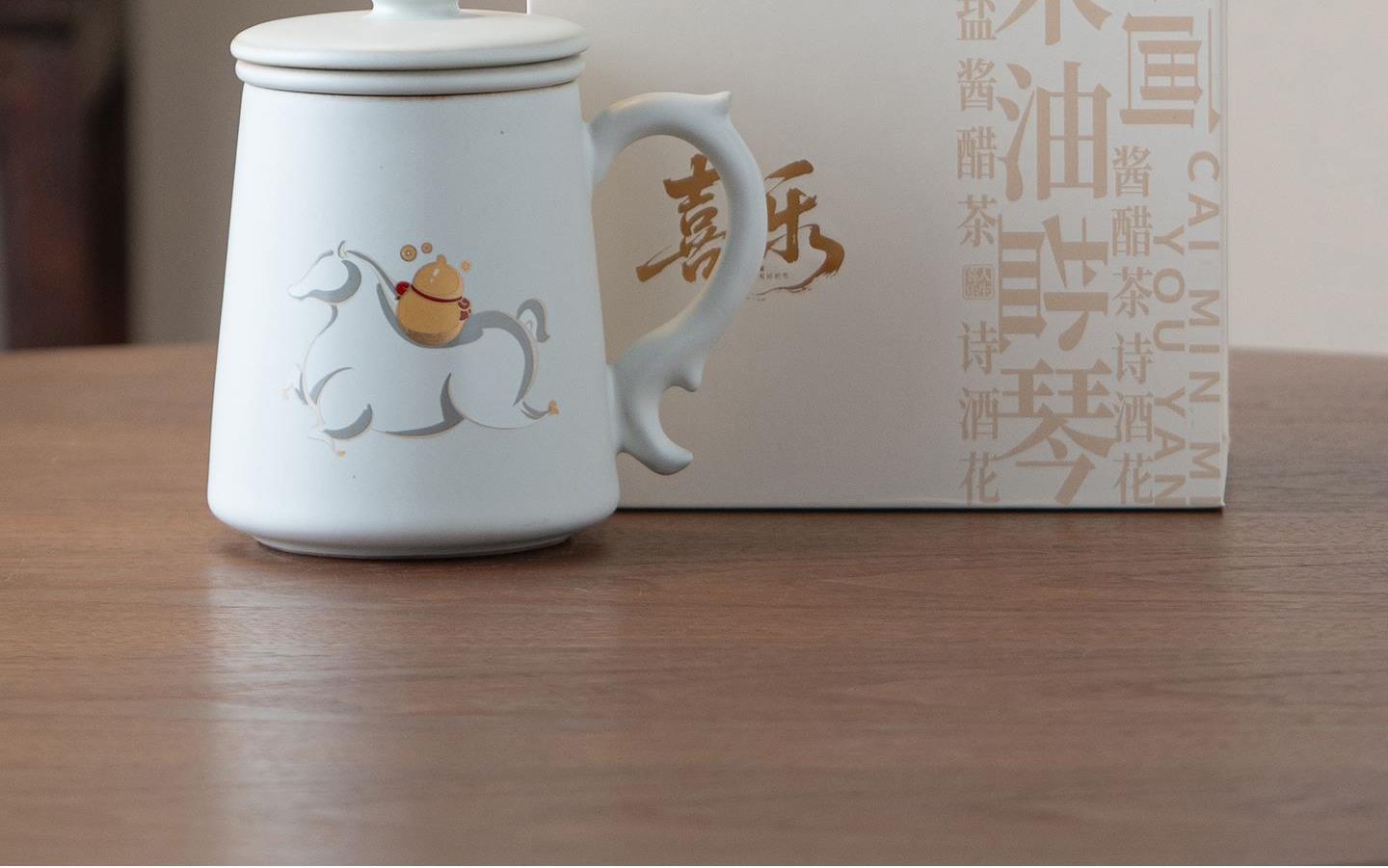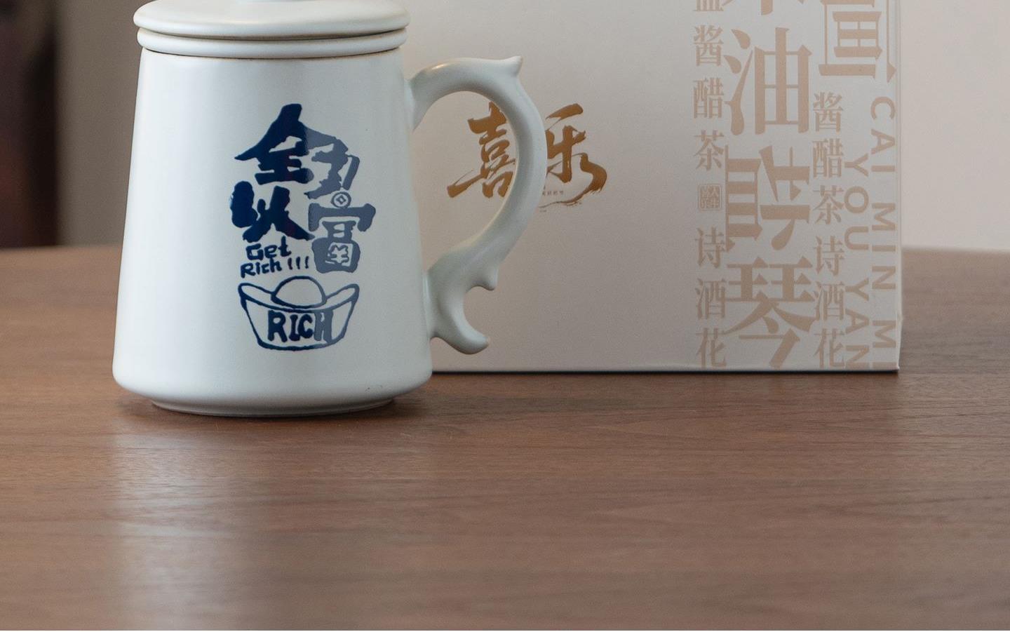 配置:办公杯*1,礼盒*1. 尺寸:办公杯长13cm高14.5cm容量450ml, 礼盒:长17cm宽12cm高19cm。 款式:暴富系列/马上有福系列。
