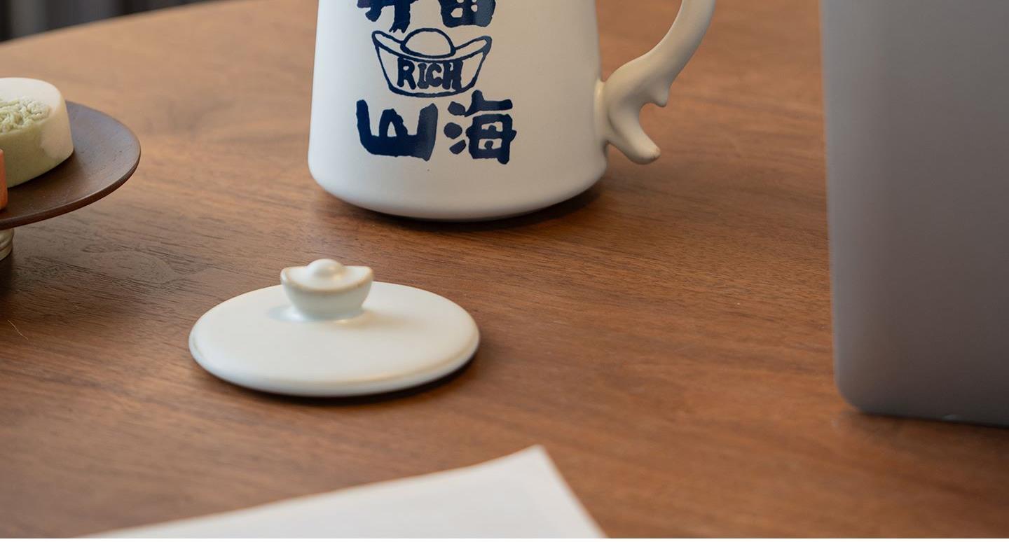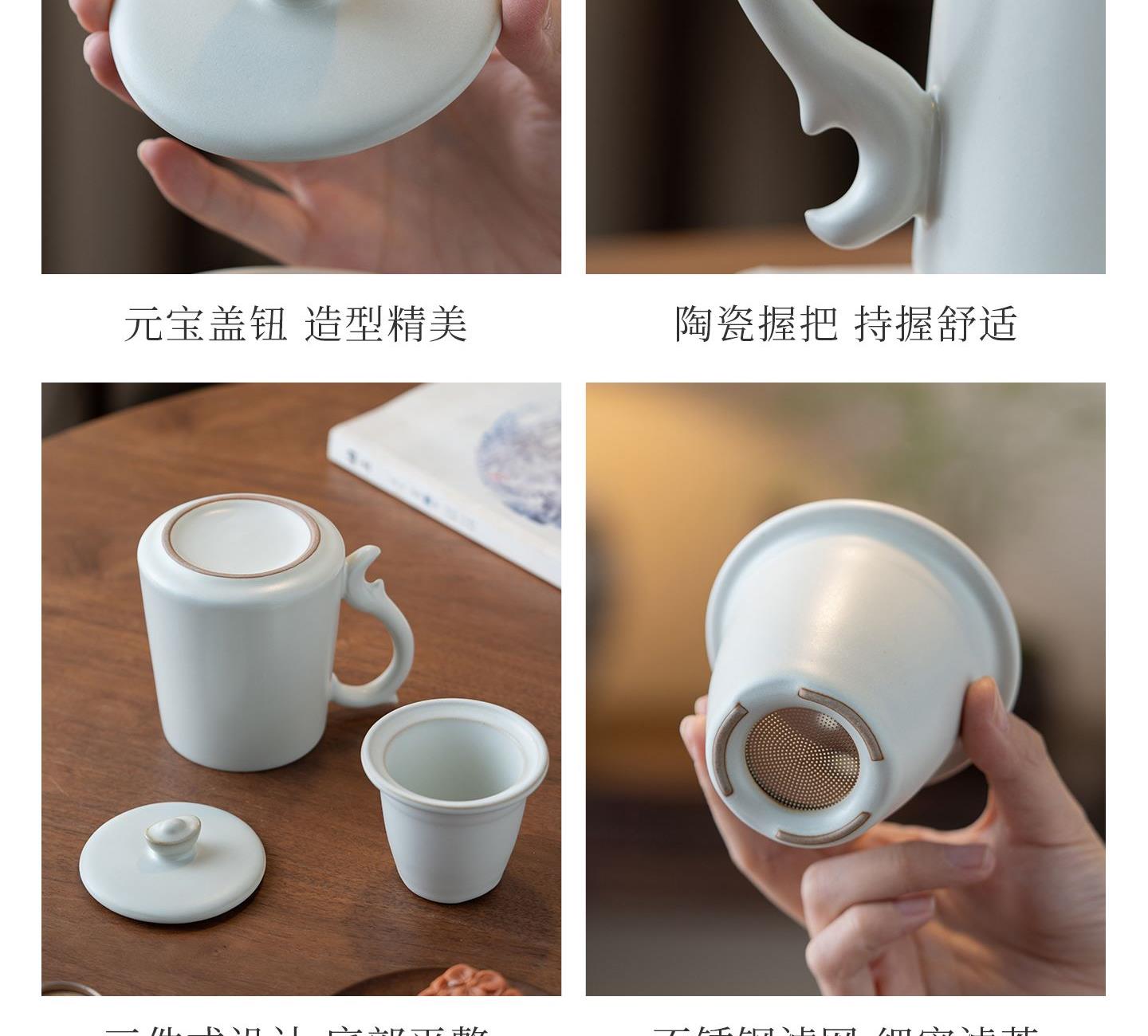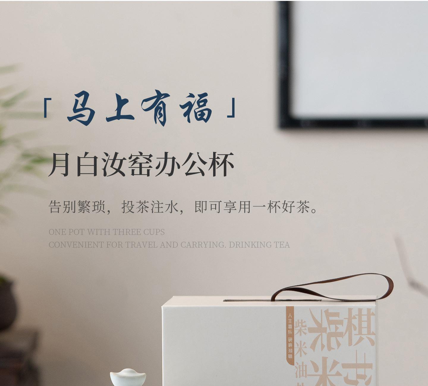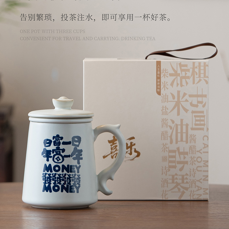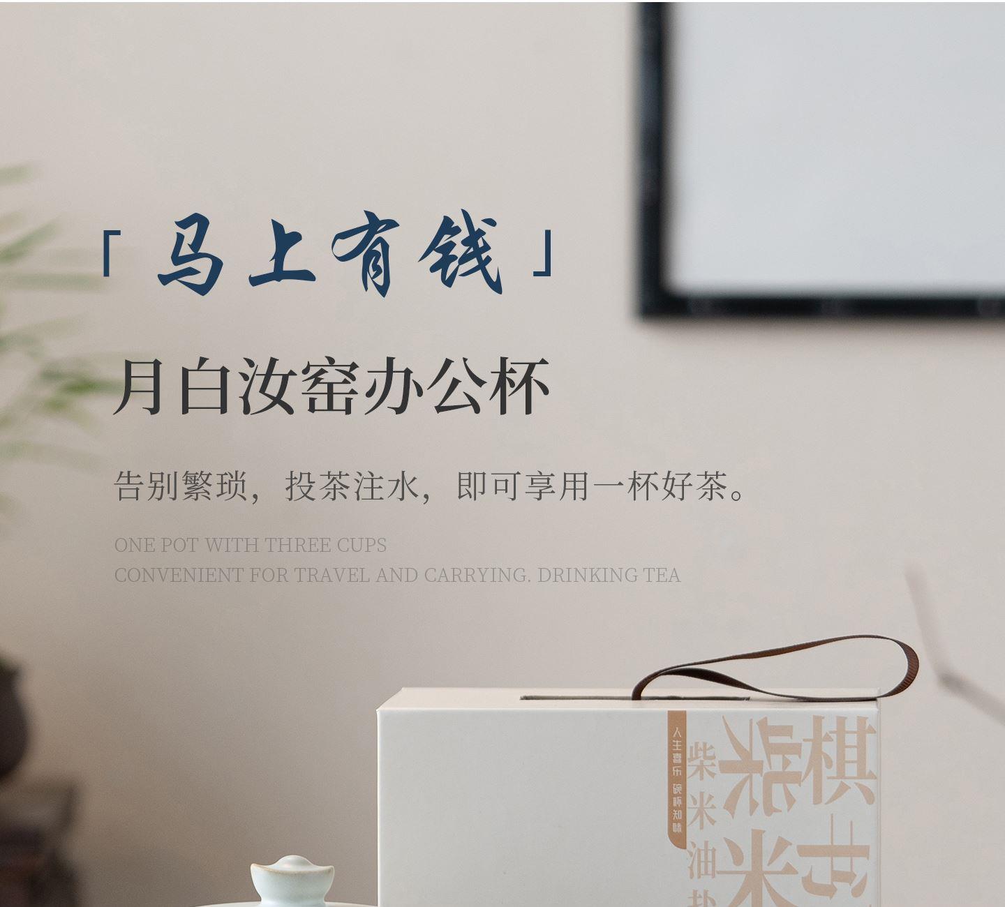 尾桥下窑月白汝窑陶瓷暴富系列办公水杯商务伴手礼年会赠品开业礼