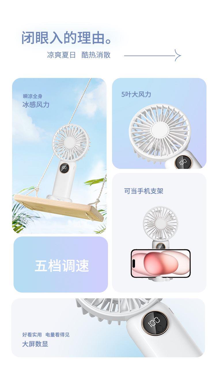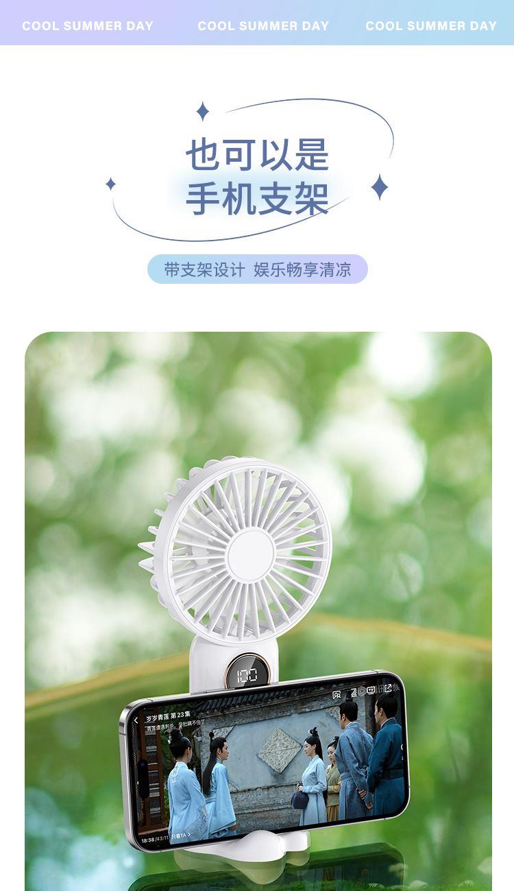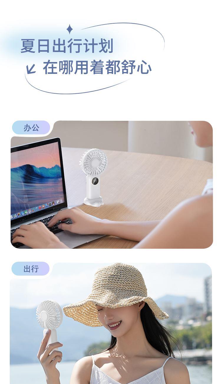 1. 小巧轻便,手持+桌面双用设计,夏日出行必备神器