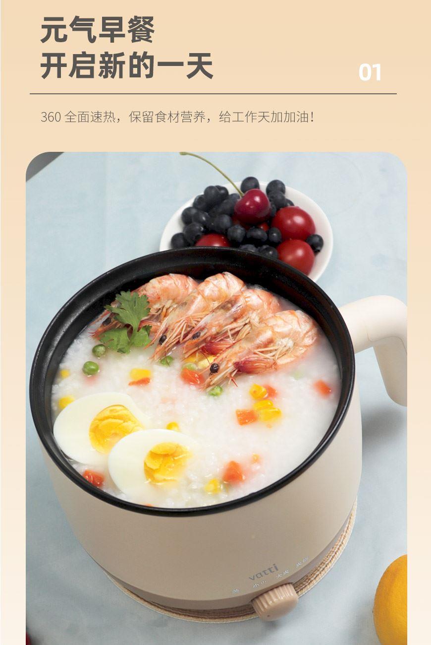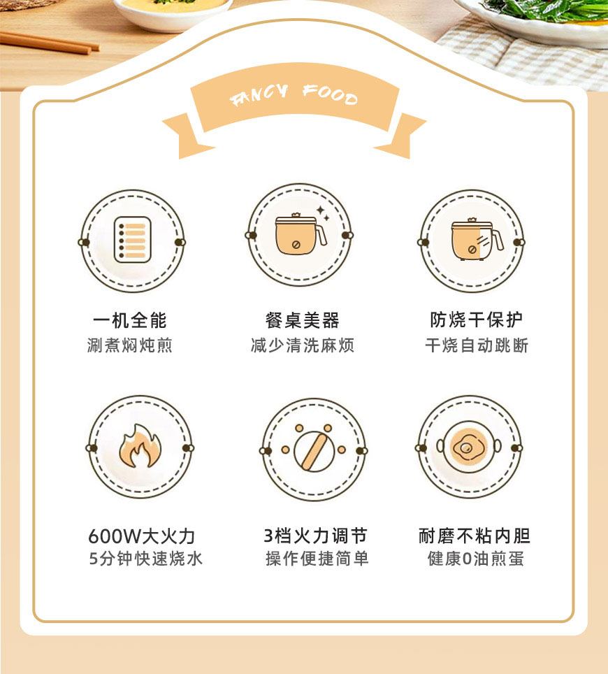 1.精巧容量:1.5L小巧体积,1-2人畅享刚刚好。 2.高效加热:600W功率,快速煮出美味。 3.便捷调控:三挡旋钮控制,随心选择烹饪模式。 4.易洁内胆:不粘涂层内胆,清