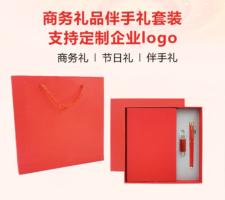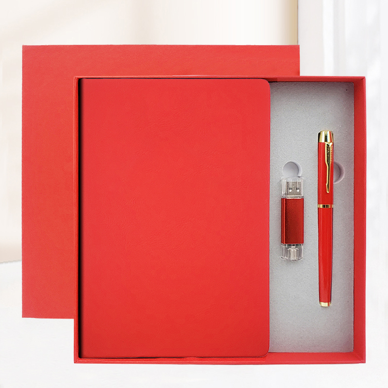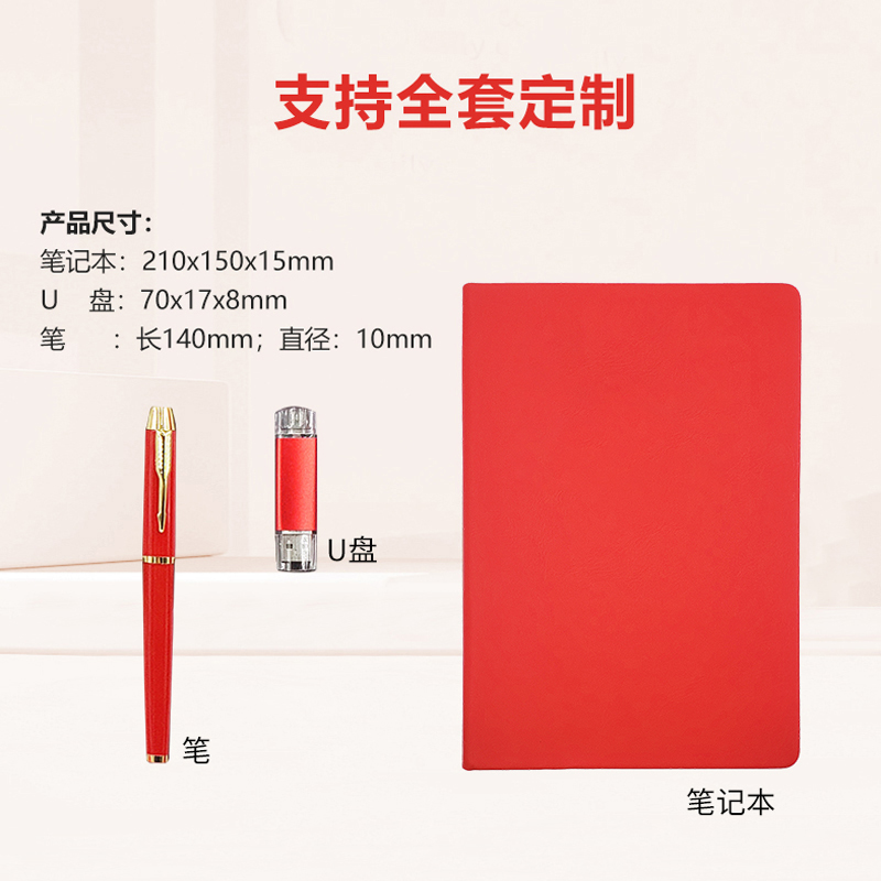 礼盒配置: 1、A5硬皮PU皮笔记本 2、电脑、手机双用16G (type-c) OTG优盘; 3、金属烤漆签字笔; 4、包装盒尺寸:227*227*33mm 5、手提袋尺寸:270*270*55mm 6、重量:约30kg/箱
