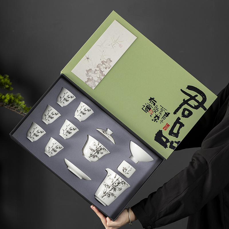 云博陶瓷节节高升10头羊脂玉瓷茶具套装中国风商务礼品随手礼