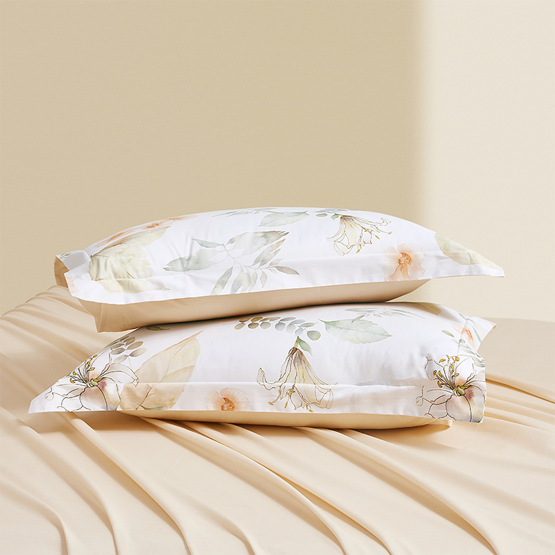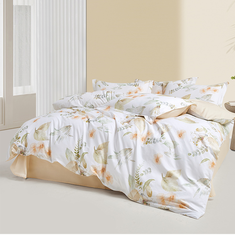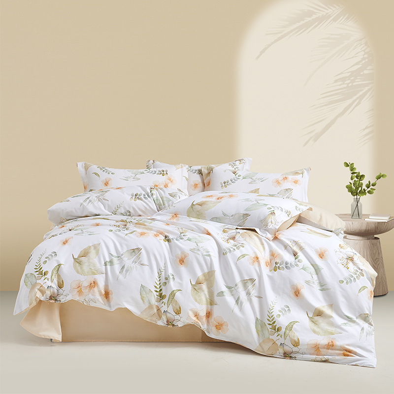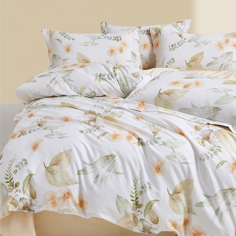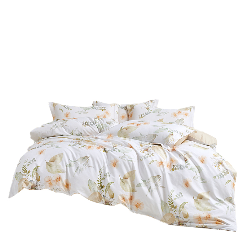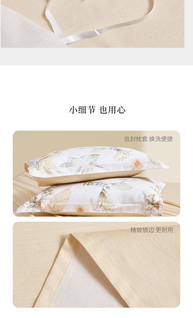 面 料:棉 尺 寸:被套:200×230cm 床单:245×230cm 短枕:50×70cm×2 整体色彩:白色为底布,融合了浅米色的花朵、不同层次的浅绿色叶片(,还有细碎的绿色枝叶点缀其中。色彩柔和朦胧,风格淡雅,充满自然气息,能为空间营造出宁静、舒适的氛围。 面料:选用优质棉花,经严格工序,梳去较短纤维,去除杂质,使棉花更有韧性,更不易起球。面料柔软平整,亲肤细腻,透气性佳。 工艺:精简的四件套组合,短枕大气。