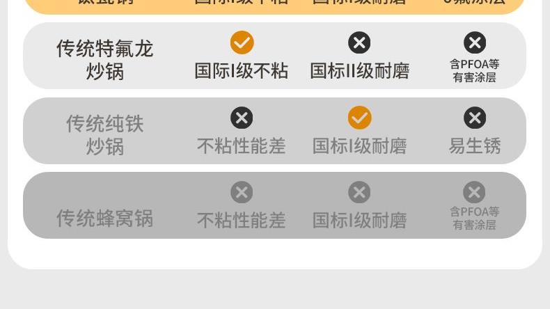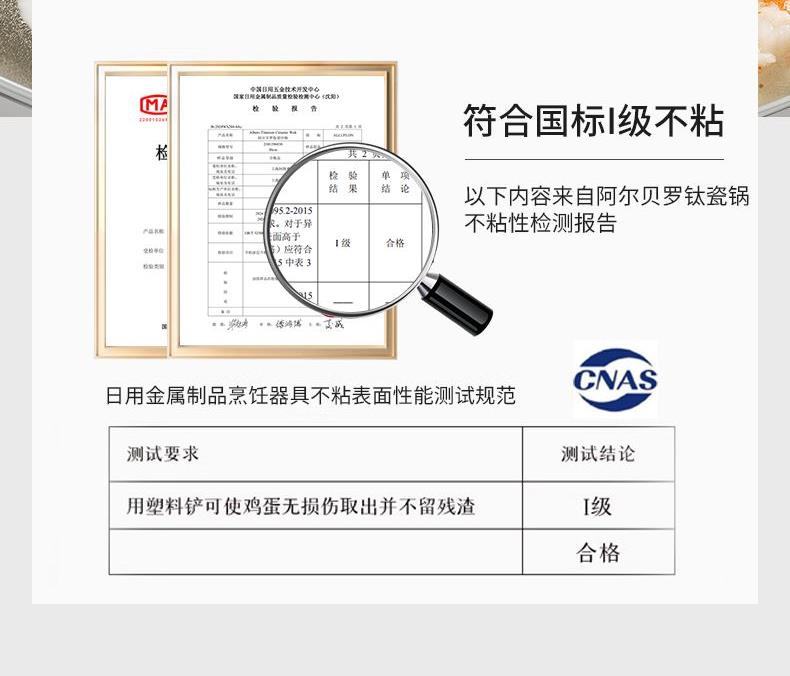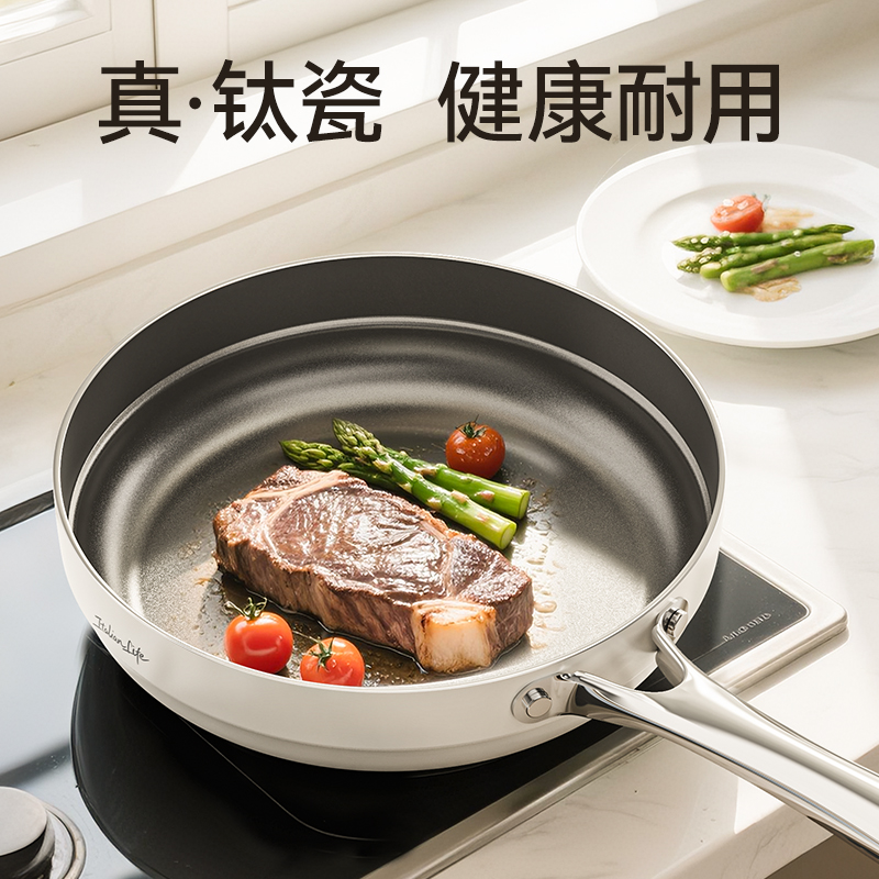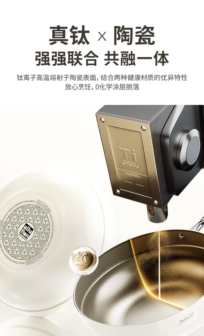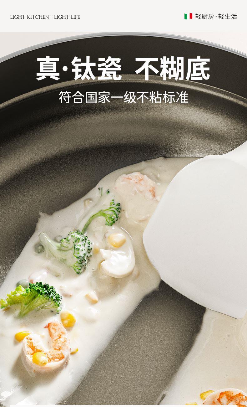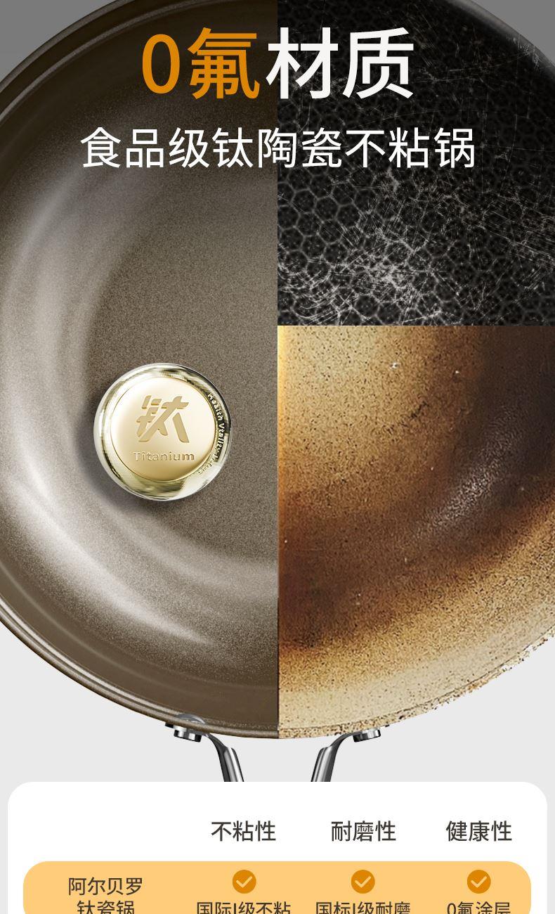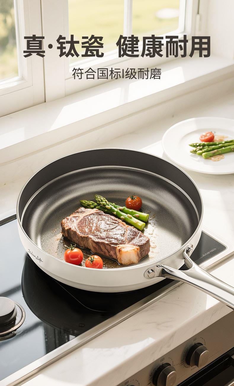 规格:26cm 材质:铝合金+陶瓷 单个尺寸:482*322*105 1、国标1级不粘,钛不粘不糊底 2、钛瓷革新材质,0氟0析出0涂层 3、9HV硬度,持久耐磨不粘 4、锅体减重约18%,单手可颠 5、可进洗碗机,解放双手。
