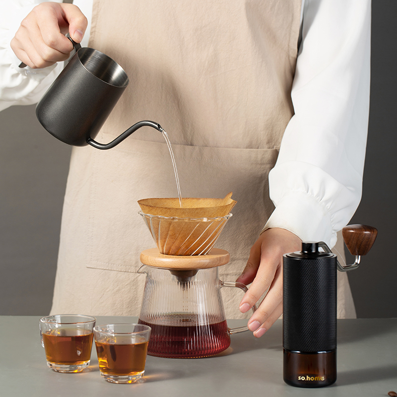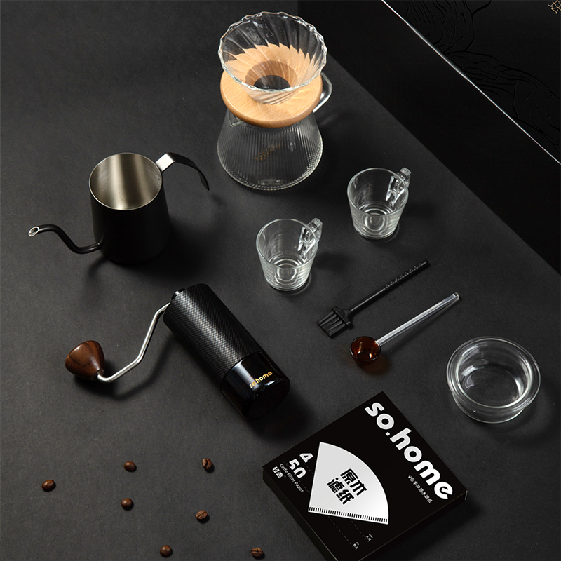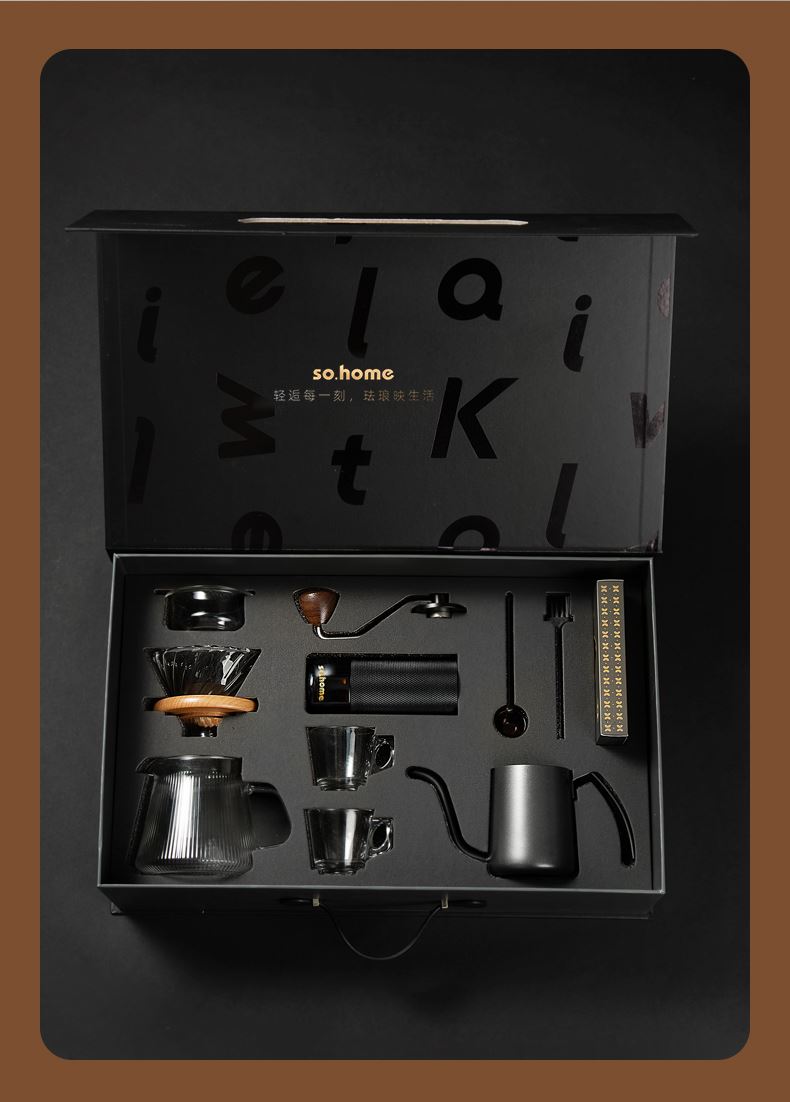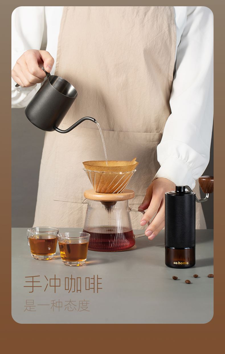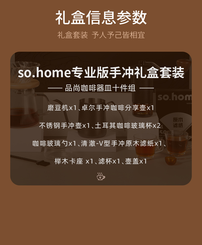 产品容量:磨豆机*1、卓尔手冲壶*1、不锈钢手冲壶*1 土耳其咖啡杯*2、咖啡玻璃勺*1 清澈-V手冲原木滤纸*1、榉木卡座*1 滤杯*1、壶盖*1 产品材质:壶体、滤斗-高硼硅玻璃、卡座-榉木 一站式整套配齐,享受有质感的冲泡体验。做自己的咖啡师在家也能享受精品咖啡,无添加萃取咖啡豆原有的味道。cnc磨豆机刀刃锋利快速切割,点位式旋转随心调节研磨粗细,滤杯旋纹导流快速萃取,分享壶V型滤嘴设计出水可控断水自如不易湔洒,高硼硅上盖可防尘可做滤斗托架可做称豆器多用途设计。