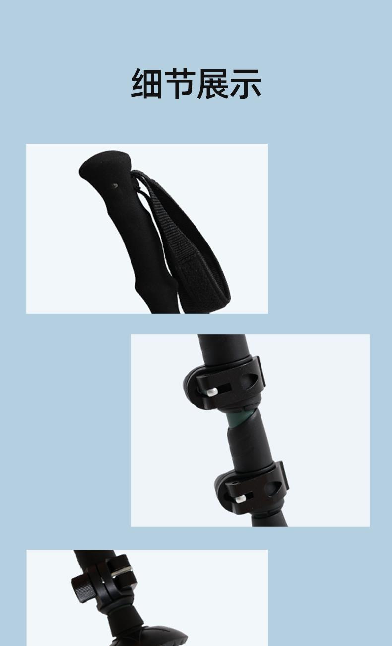 材质 杖身: 碳纤维、杖尖:钨钢、手柄 颜色 雾面青墨 尺寸 63-136cm 锁紧 方式 外锁 节数 三节 包装 独立纸箱+外箱 重量 0.2kg,毛重0.35kg 选材讲究,只为手杖更轻便 抓地纹路设计,贴合各种路面保障行走更稳固更安全 新型外锁,顺时针旋转即可解锁/开锁 三节伸缩,携带使用便携