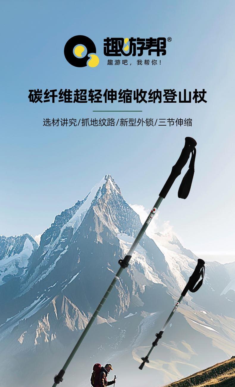 趣游帮碳纤维超轻伸缩收纳登山杖(Q615)