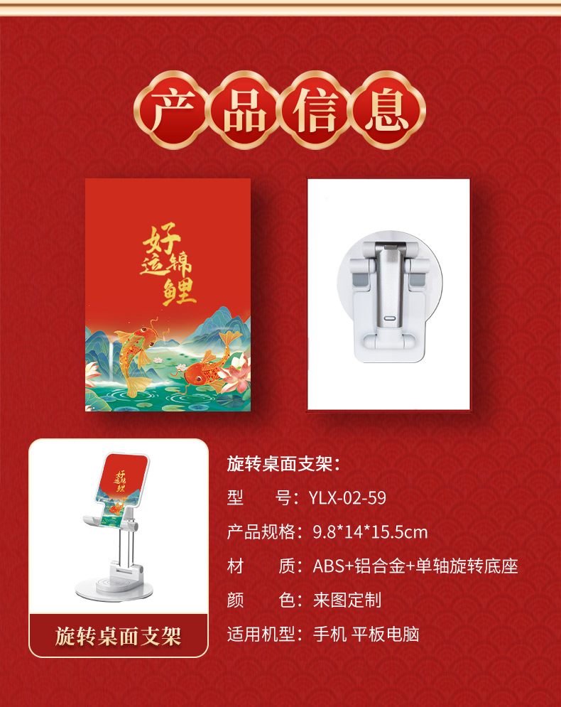 遥里逊好运锦鲤桌面旋转手机支架礼盒套装YLX-02-59T