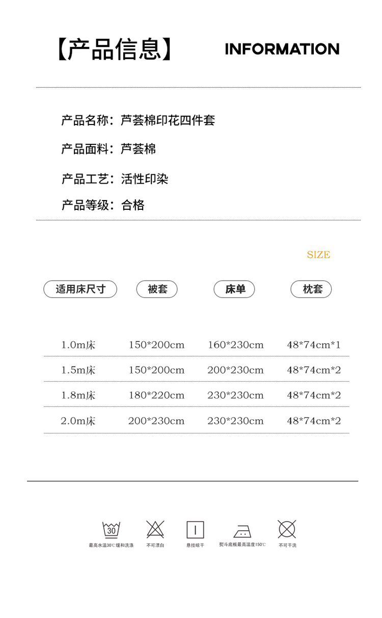 1:高密面料 舒适柔软 细腻触感 如脂丝滑呵护肌肤令人心动的触感 2:有些温柔是藏不住的 静下心享受着柔软的慰籍高颜值起居 让卧室氛围呈现出不一样的效果 3:新一代活性印染 色牢度高不易起球 不易掉色可机洗水洗 解放双手 4:尺寸:被套:200*230cm*1 床单:230*230cm*1 枕套:48*74cm*2 重量:约1.3kg 包装:精美彩色礼袋