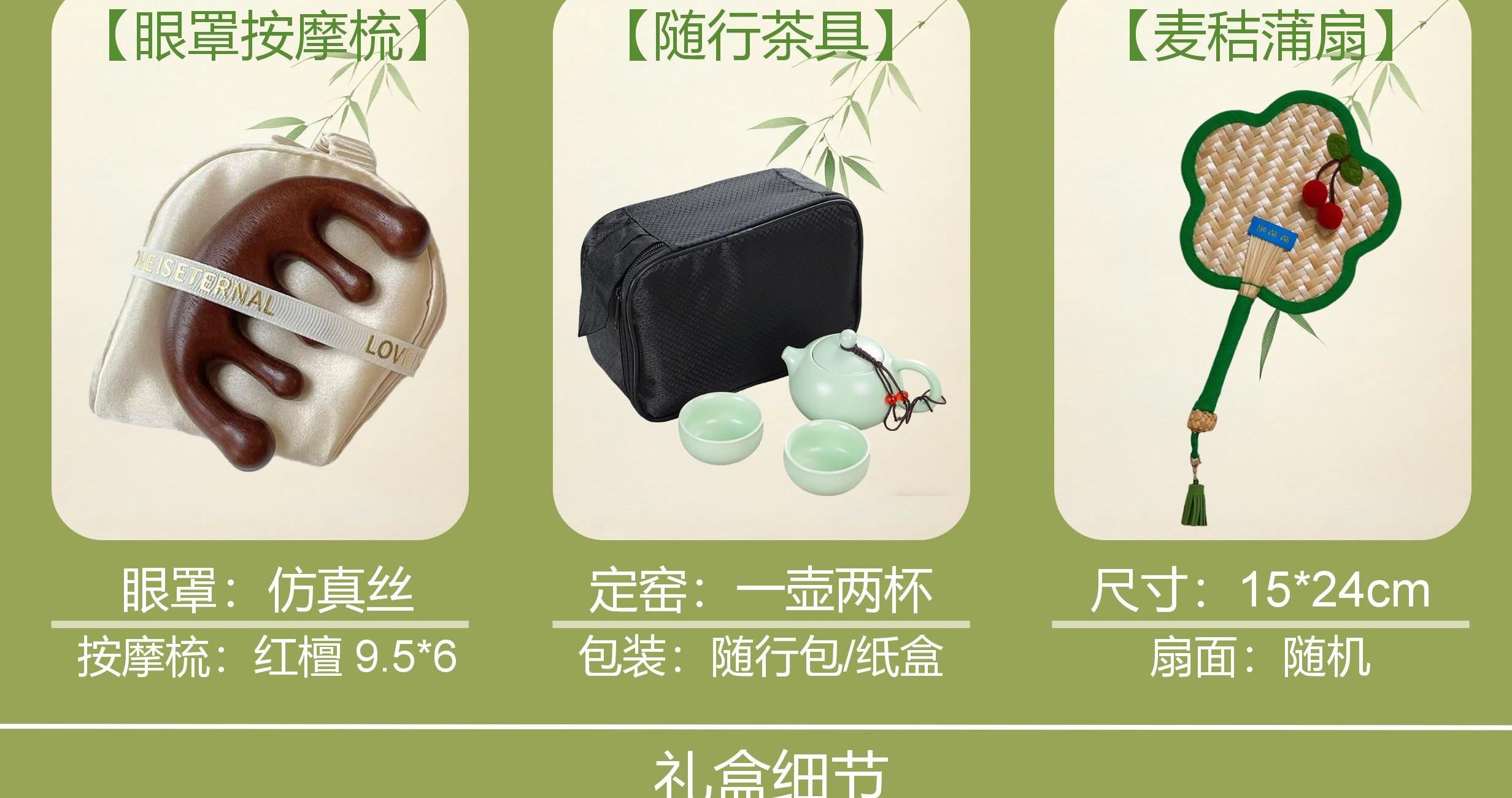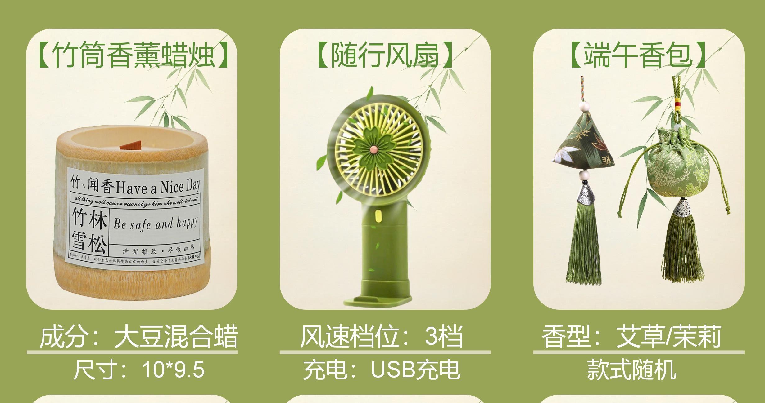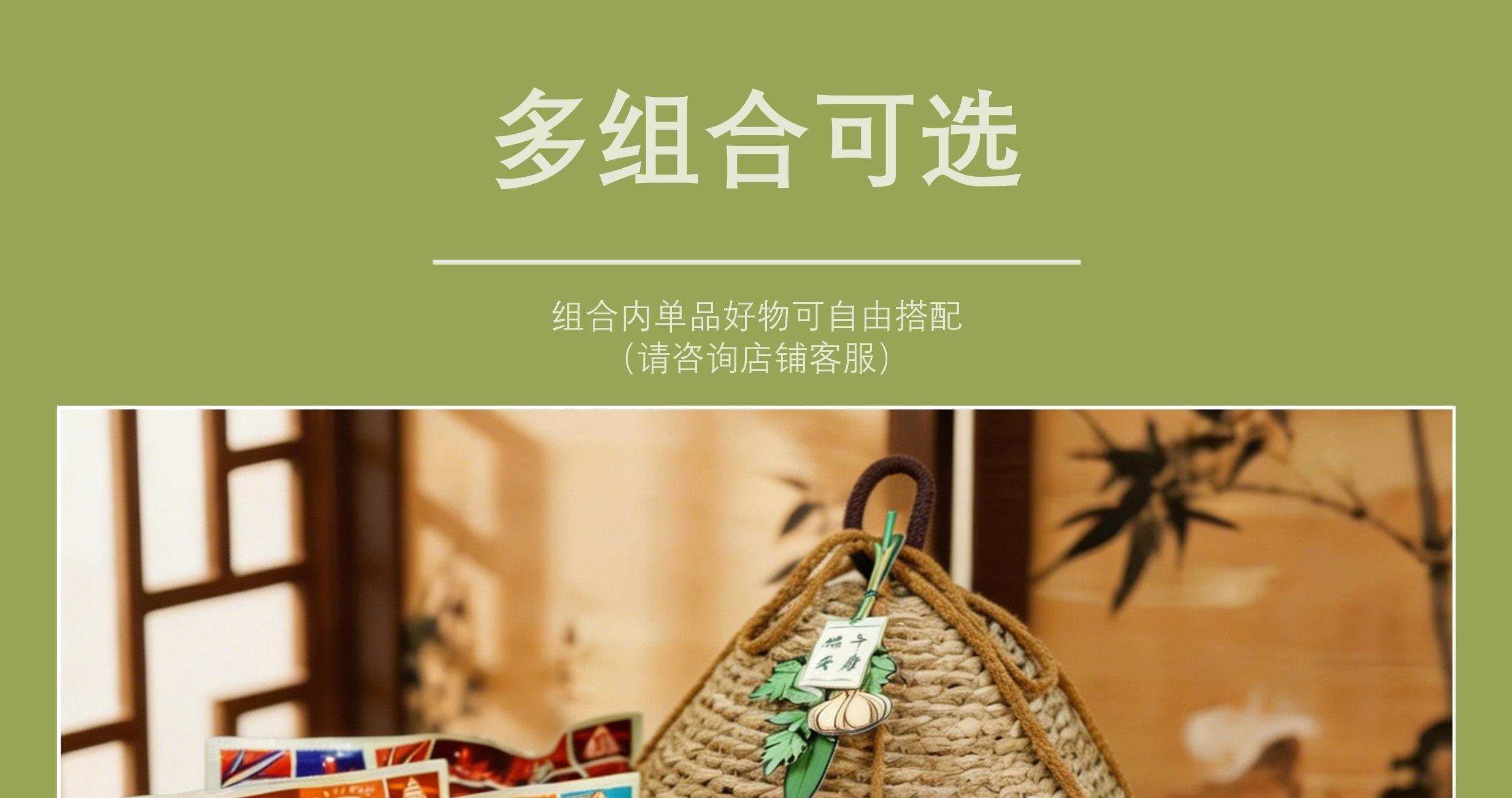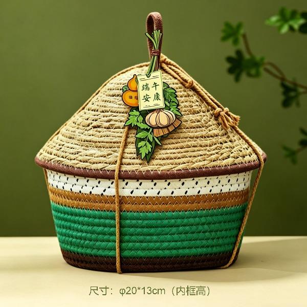 真真老老经典鲜肉粽100g*2 真真老老红袍豆沙粽100g*2 稻香私房咸鸭蛋4枚 平安喜乐陶瓷品茗杯*2 端午风物艾草精油香皂100g 竹筒香薰蜡烛氛围摆件 五谷丰登端午编织收纳筐 网兜手提袋 端午风物吊牌 提篮尺寸:φ20*13(23)cm