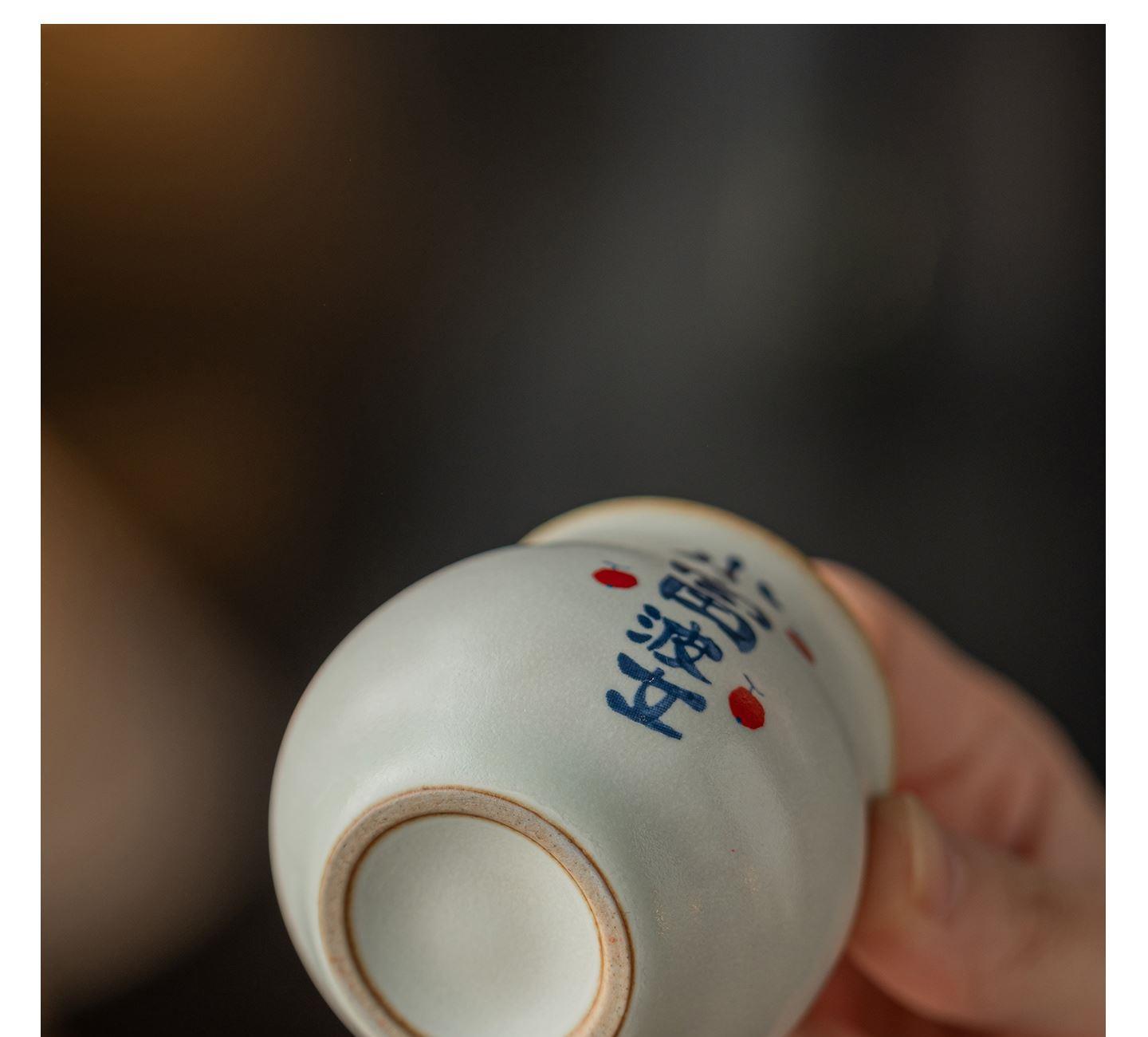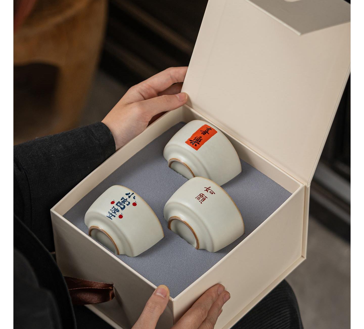 尾桥下窑陶瓷月白汝窑主人杯小套装新年节日伴手礼开业会议赠品