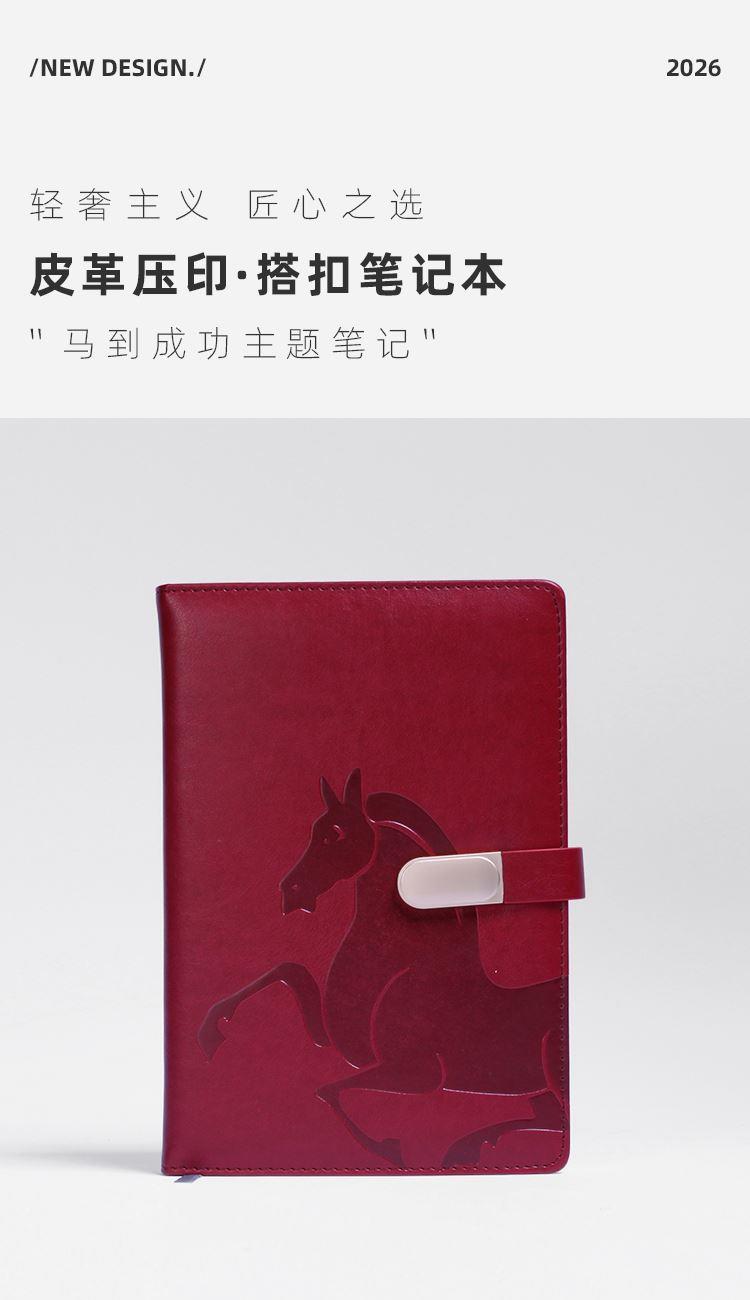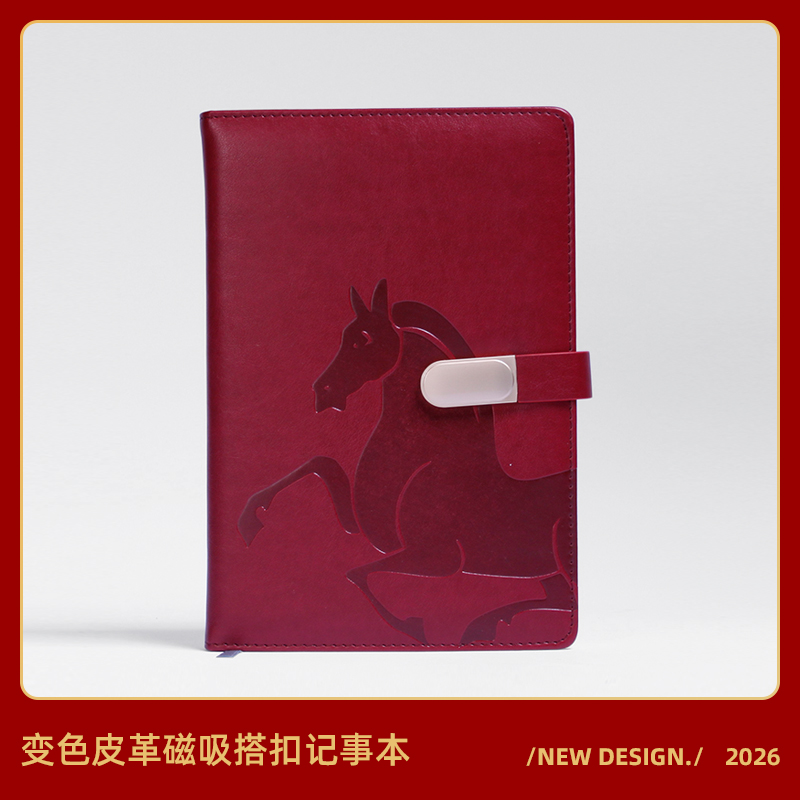 青锦2026【战马】变色皮革磁扣记事本商务会议记事办公用品