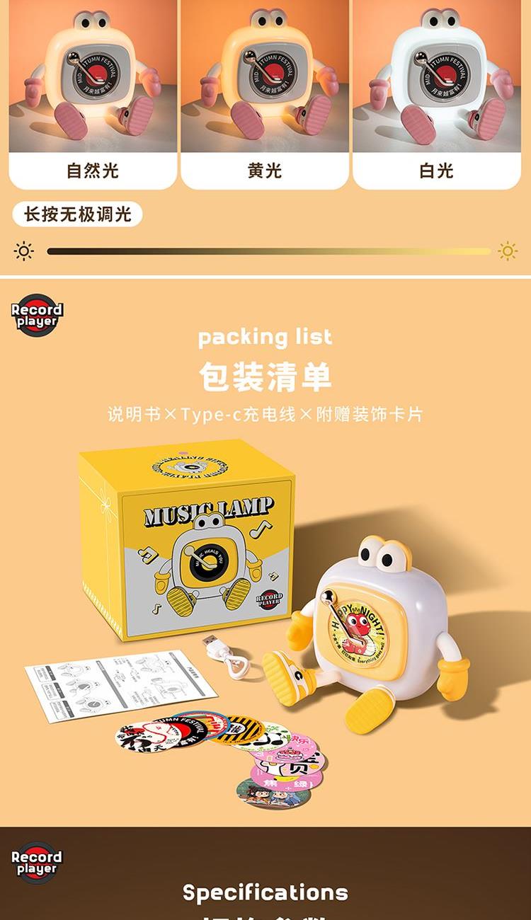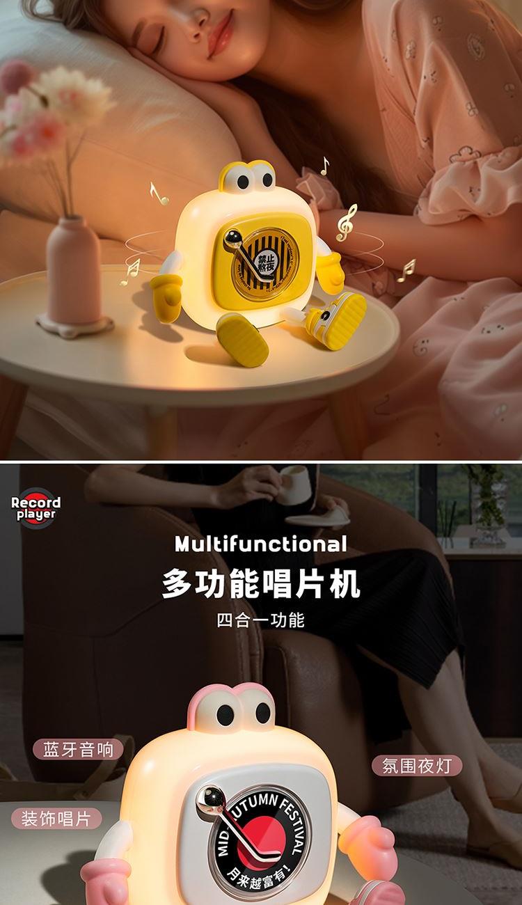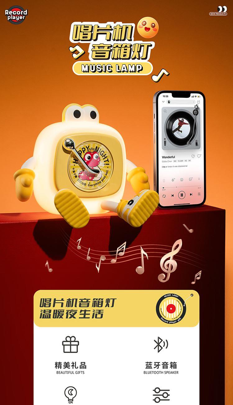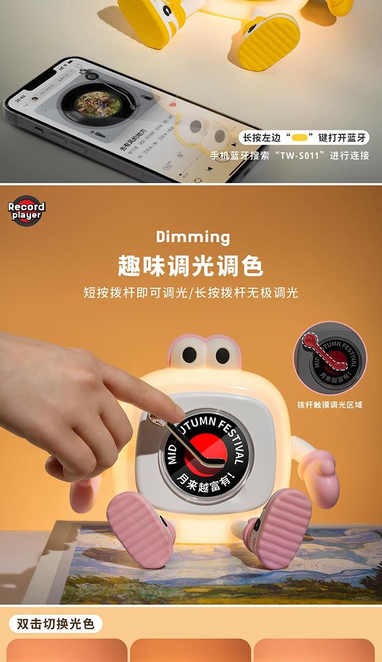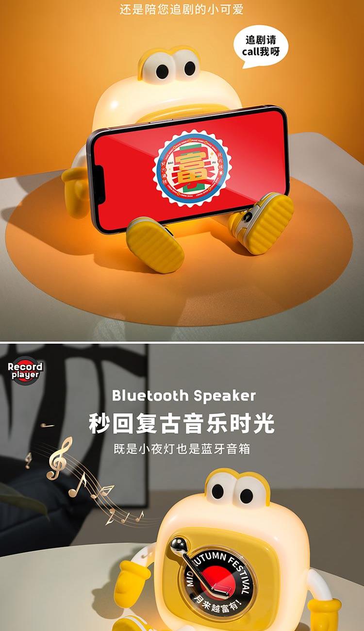 ● 蓝牙音箱 ● 无极调光 ● 三种光色 ● 柔光伴睡 ● 手机支架 ● 内置电池