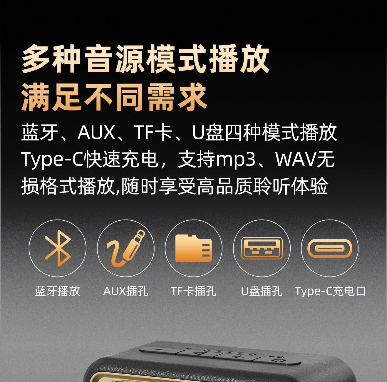 功能支持 :蓝牙/TF卡/USB/AUX音频线/收音机