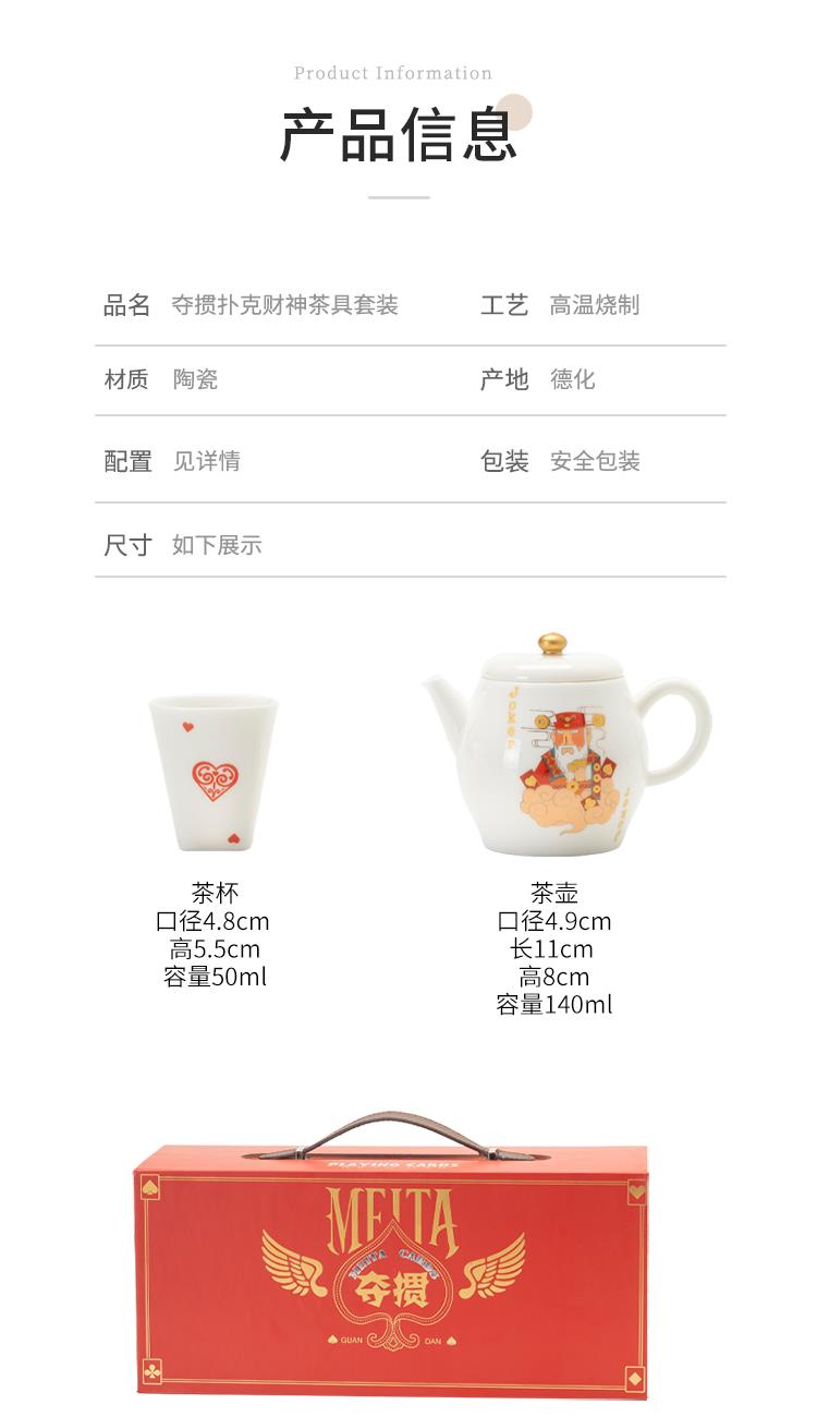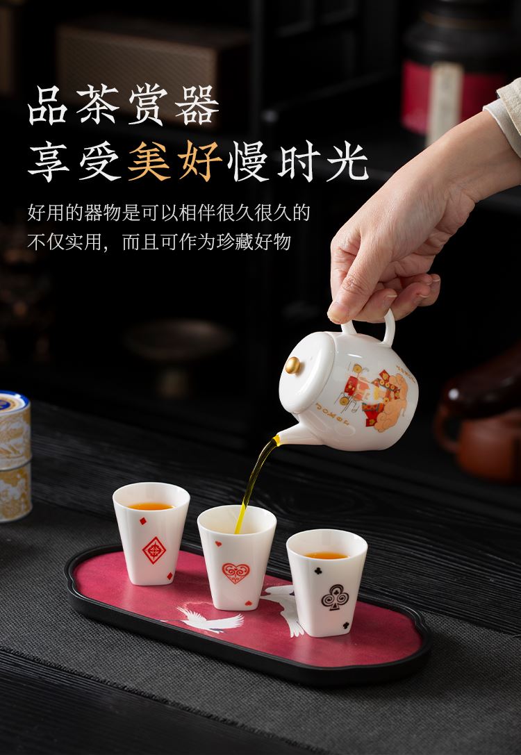 云博陶瓷羊脂玉瓷掼蛋组合养生茶套装户外扑克牌一壶四杯商务礼品