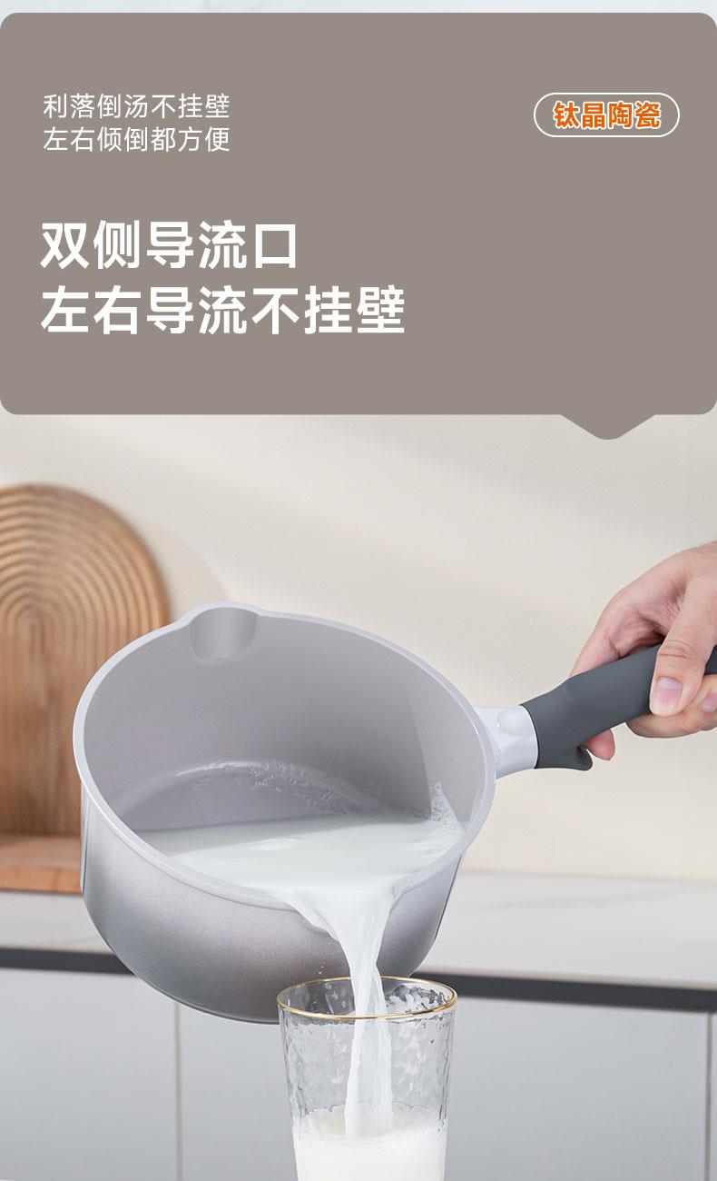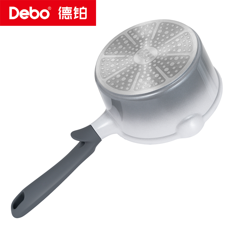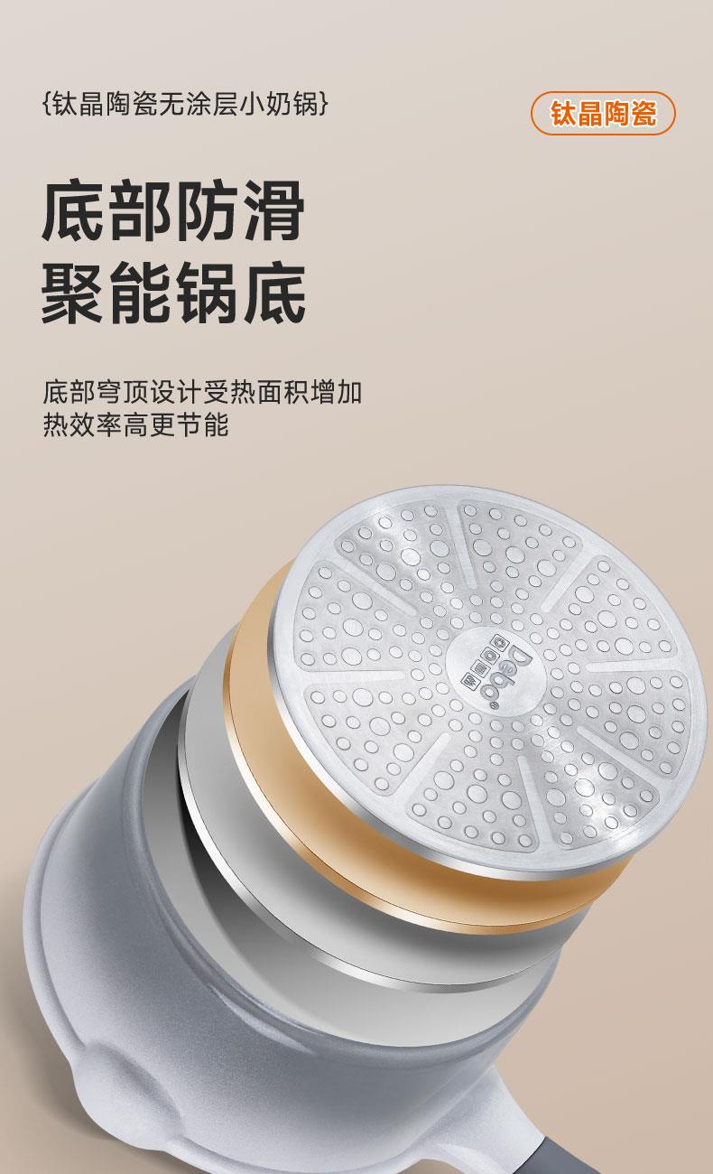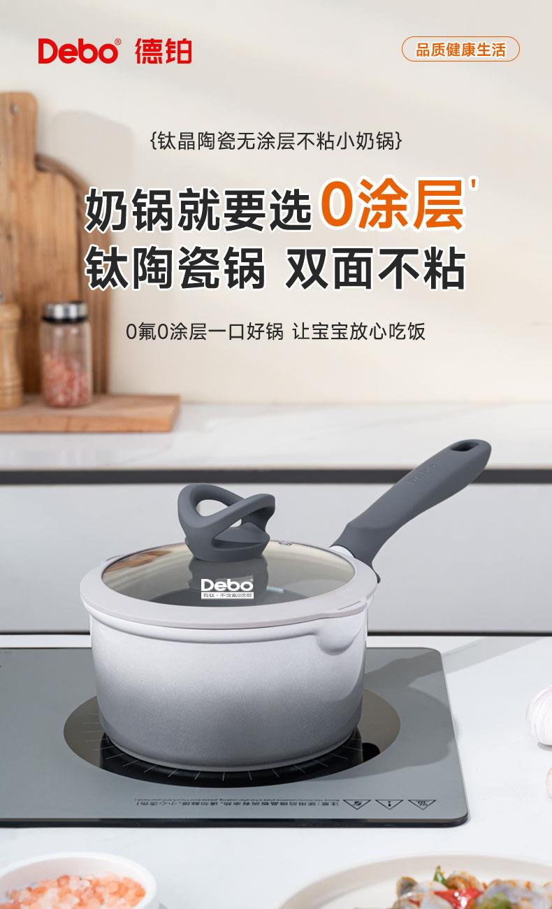 型号:DEP-980 口径:18cm 容量:2.2L 材质:铝合金 包装尺寸:430*130*235mm 配置:锅身*1、玻璃盖*1 1. 内钛外陶双面不粘,无惧各种易粘食材; 2. 有钛更健康,保持食材原汁原味; 3. 锅身双侧导流口设计,倒汤利落不外洒, 左右都顺手; 4. 独特的顶珠设计,可放置铲子, 保持台面干净整洁; 5. 好锅不挑灶,加厚复合锅底,适用更多炉灶。