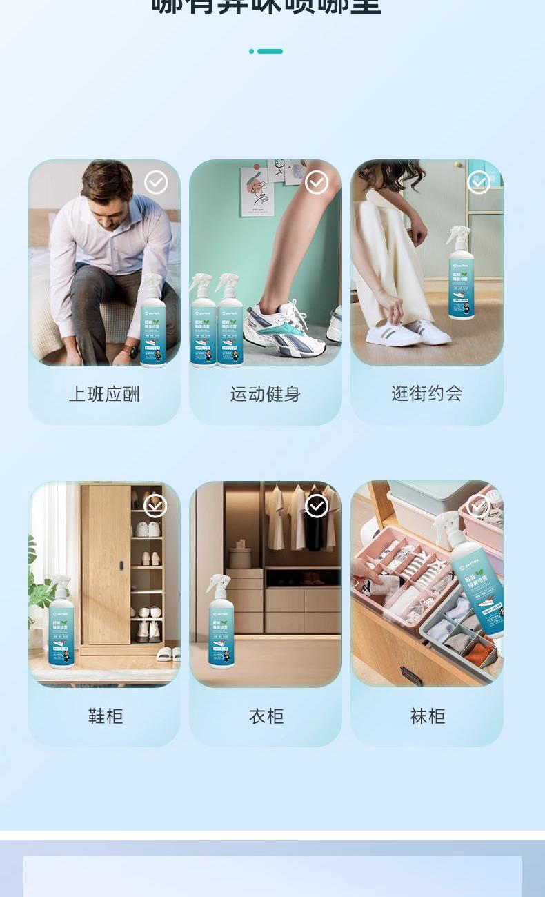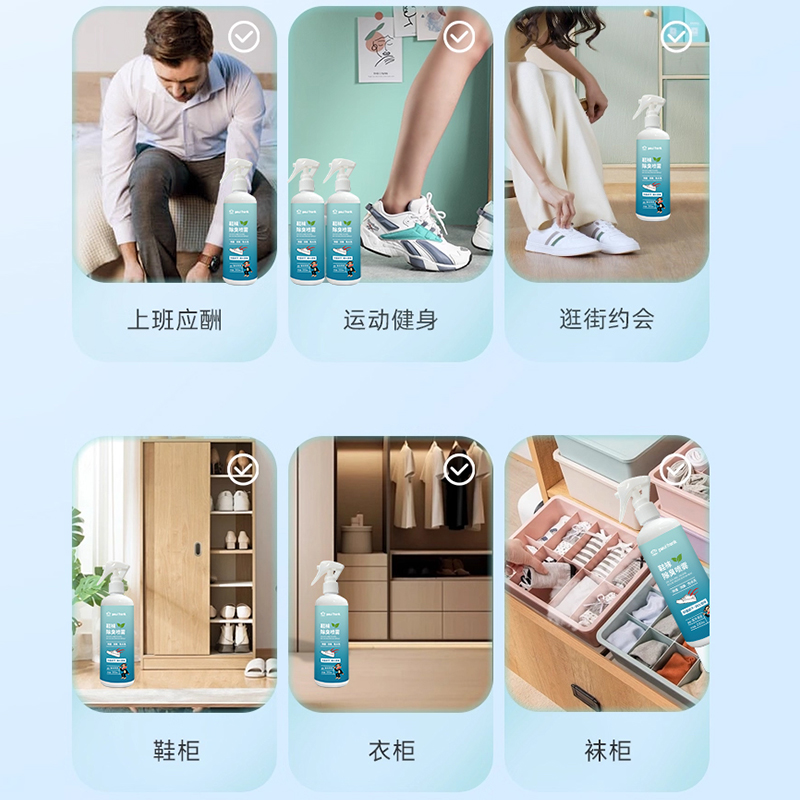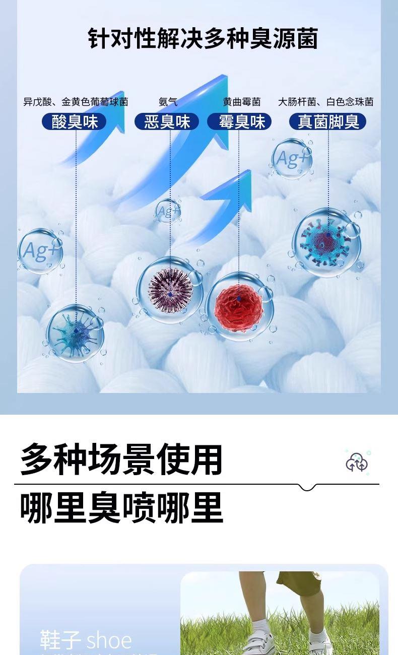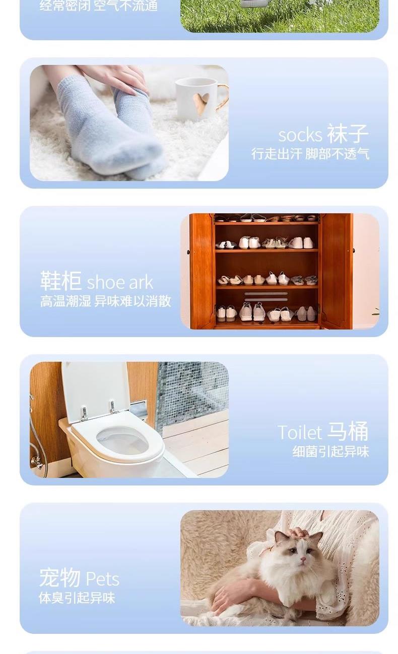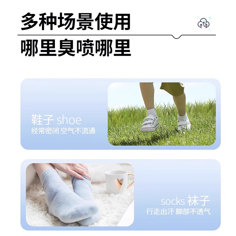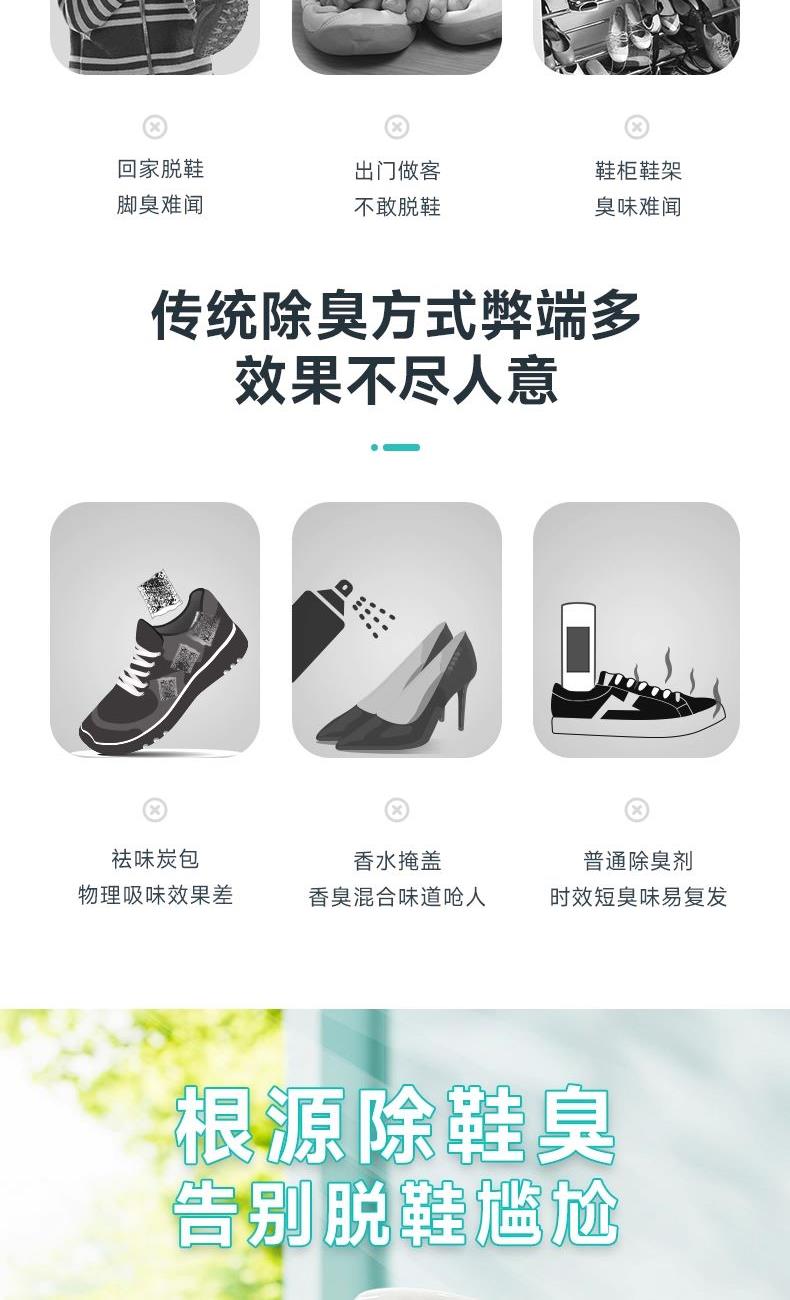 快速除臭 轻松去味适用于各种鞋型; 有效清新去味,深层洁净,赶走异味,持久留香; 除臭-快速净味除臭;