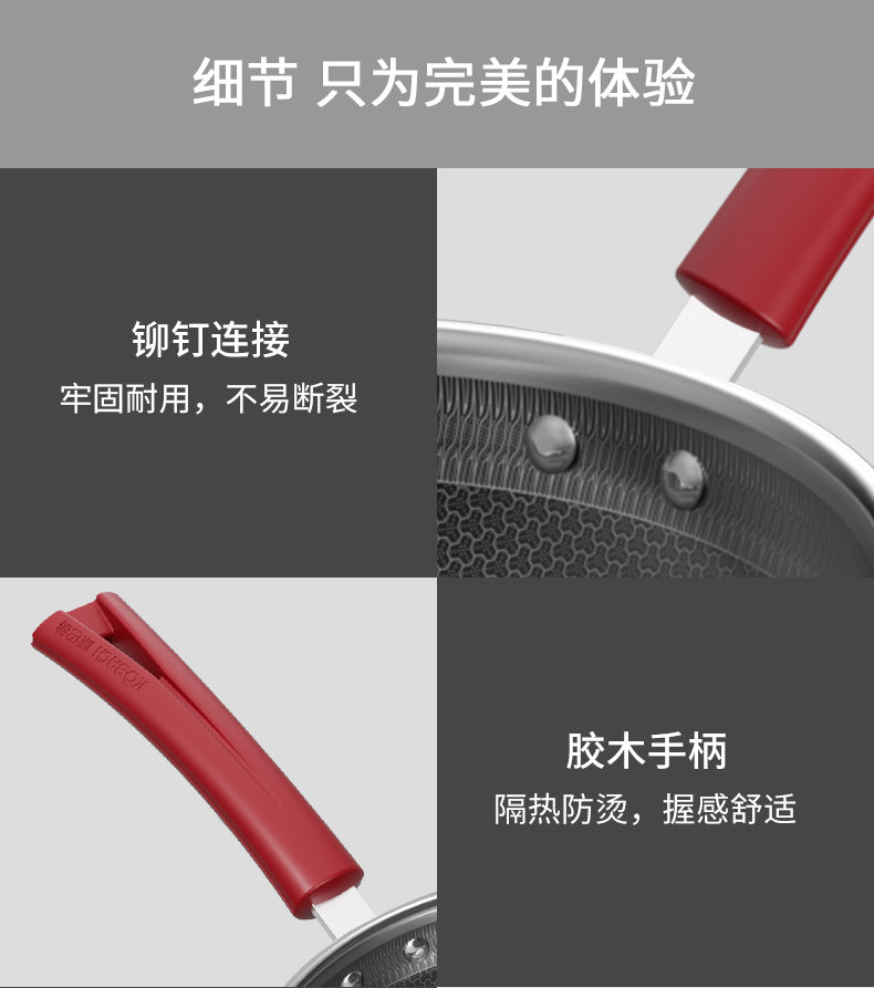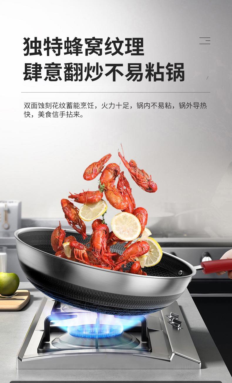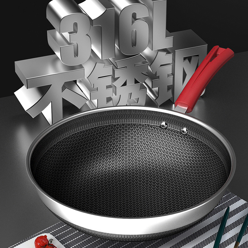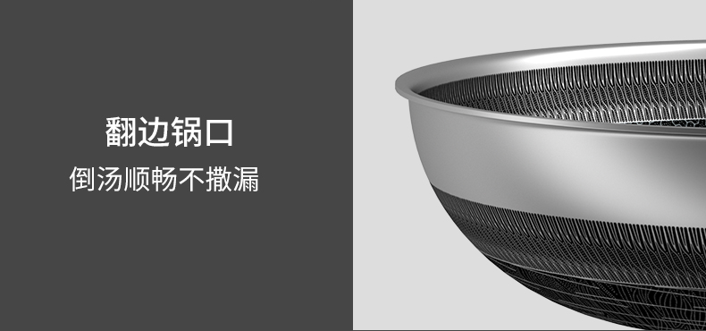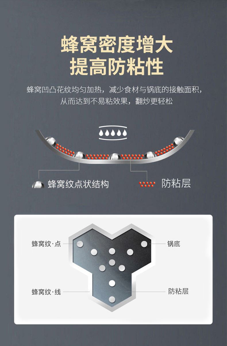 规格:32cm 重量:1.4kg 包装尺寸:56.5*36*69cm ◎锅体采用316L不锈钢材质,食品接触级材质,耐腐蚀性更强更耐用。烹饪过程中杜绝食材和铝的接触,为家人的健康安全护航。 ◎运用蚀刻工艺,在锅壁内蚀刻出精密凹凸纹理,防粘层仅覆盖纹理凹陷处,凸出部分构成一张蜂窝网状结构,减少食材和锅面的直接接触,防粘层不易脱落更耐用。 ◎特设油水位线,易区分,用量易掌控。微压气阀,安全防护,及时泄压,防止溢锅。 ◎同心圆结构浮雕纹理,导热迅速且均匀,锅底稳定性强,不易发黄变形,不惧剐蹭。不挑炉灶,燃气灶、电磁炉、电陶炉等都适用。 ◎多层复合结构,加厚耐凸锅底,热力附着锅底时受热更均匀。锅身冲压成型,结实耐用,无需过多担心久用变形等问题。