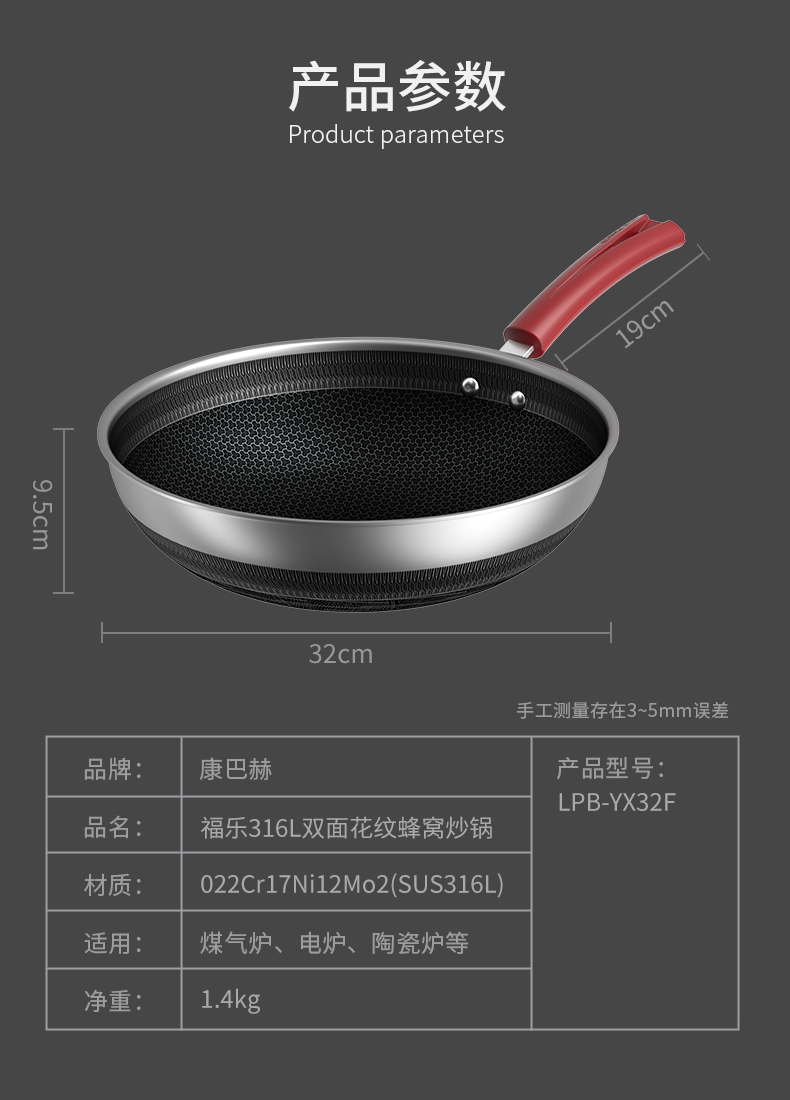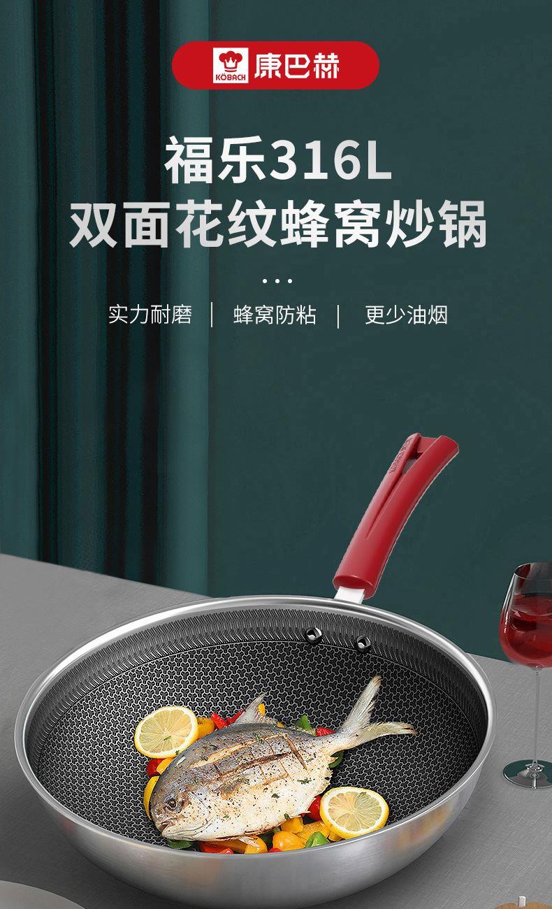 • 康巴赫-福乐316L蜂窝炒锅32cm无盖LPB-YX32F