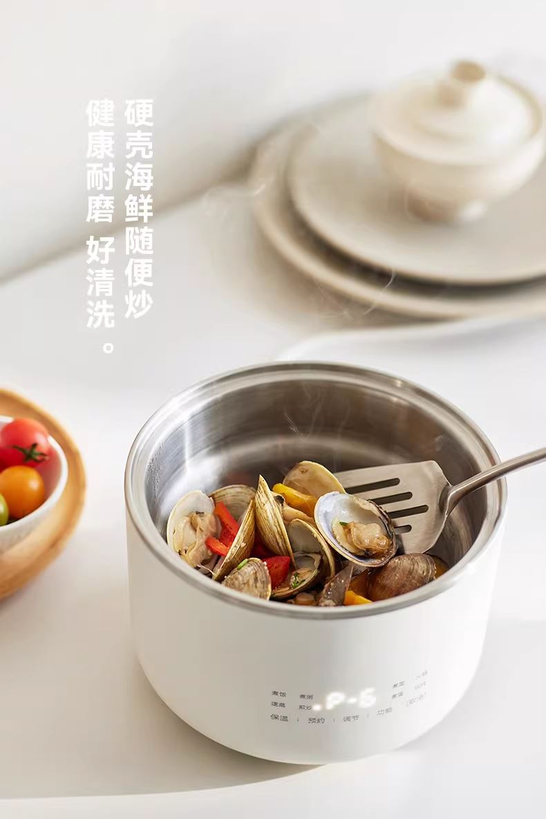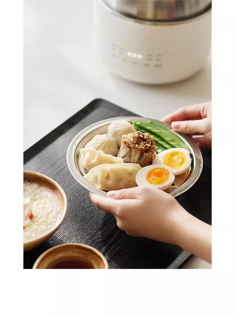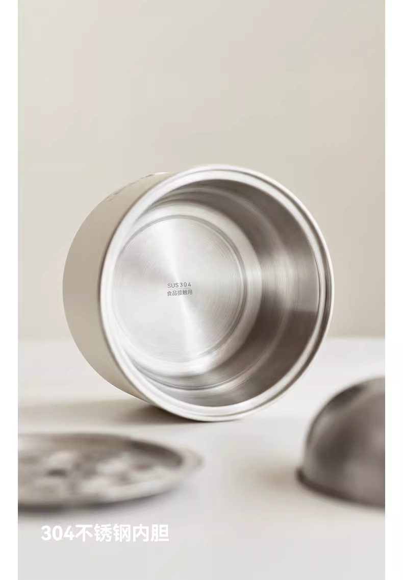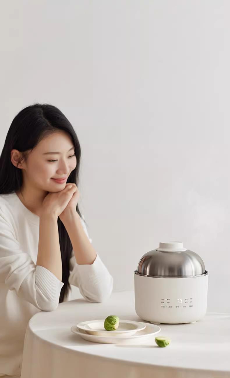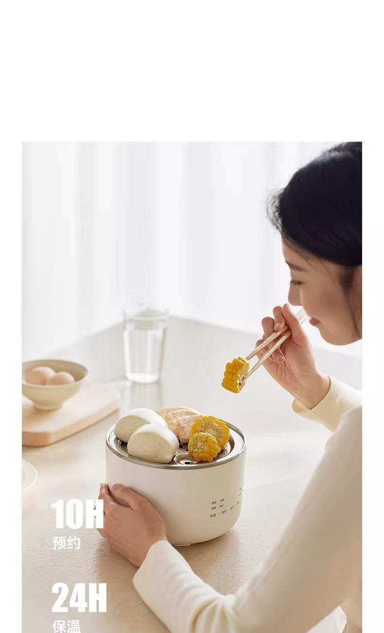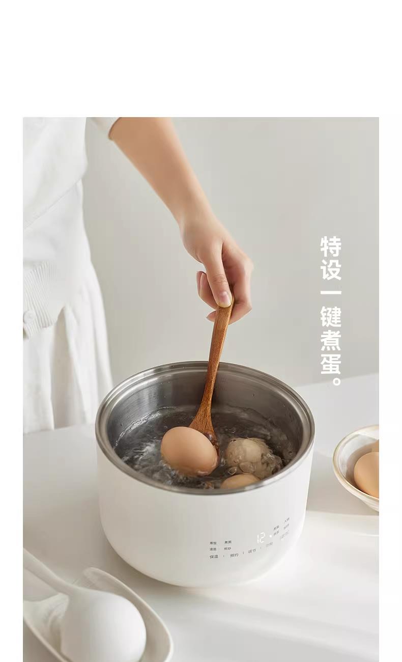 颜色:陶白色 容量:1.5L 毛量:2.3kg 额定功率:600W 产品尺寸:185*185*198mm 包装尺寸:241*241*175mm 条码 : 6977735713403 1. 食品级304不锈钢内胆/锅盖/蒸盘 2. 触控微电脑8大菜单定时/预约 一键安心煮 3. 食品接触都无涂层才是真健康