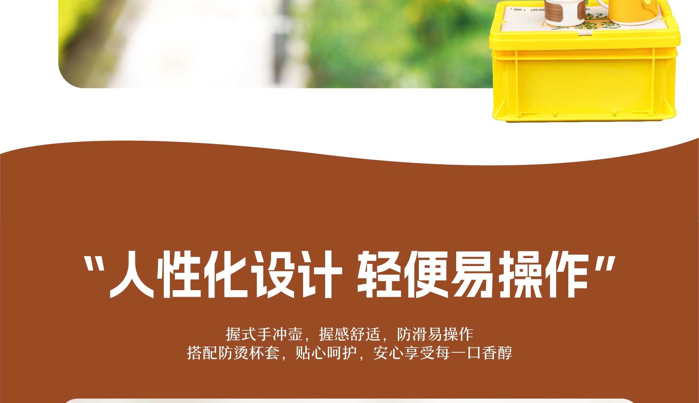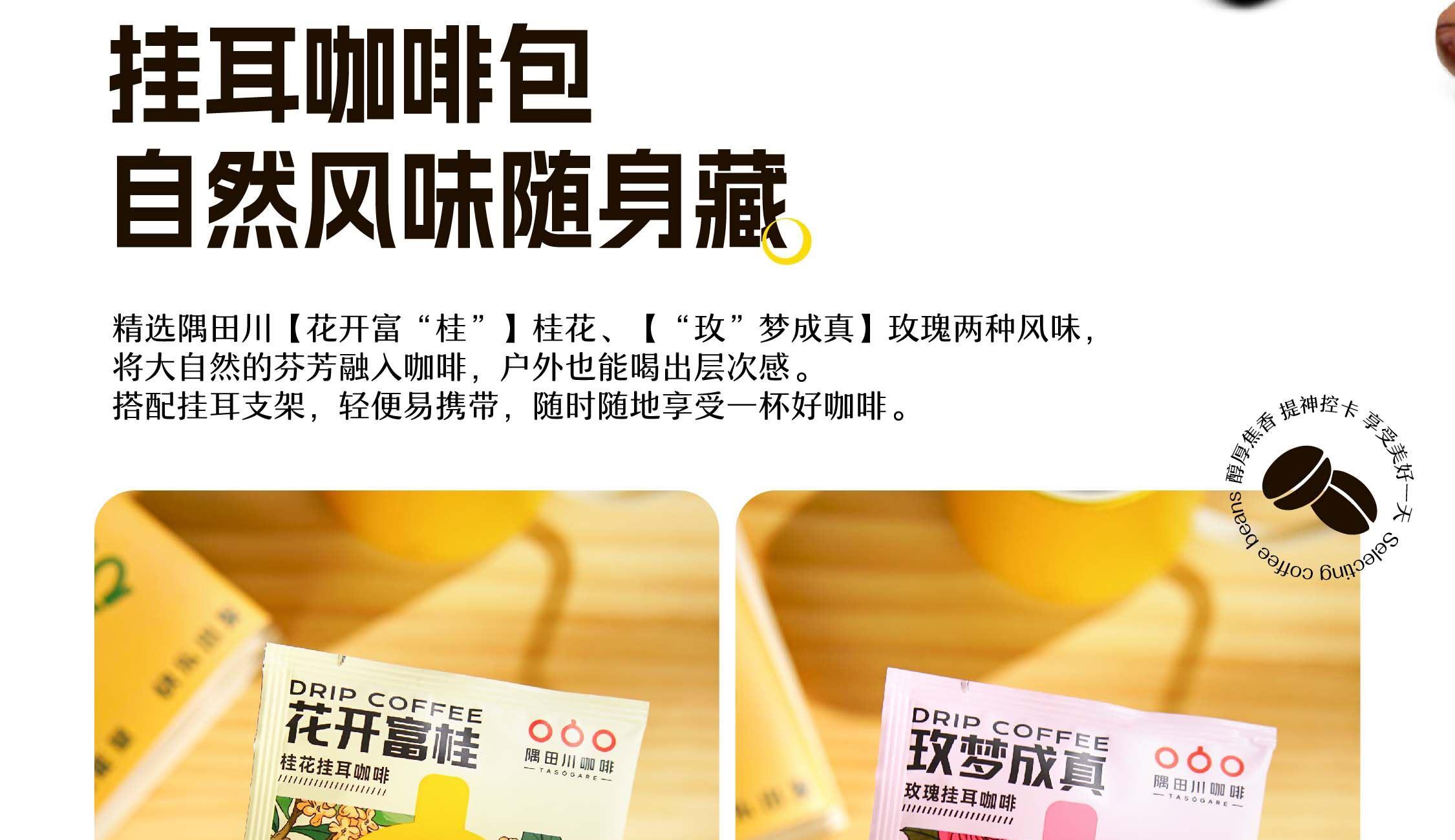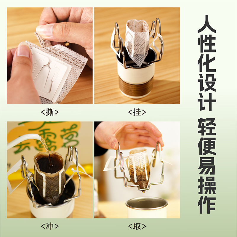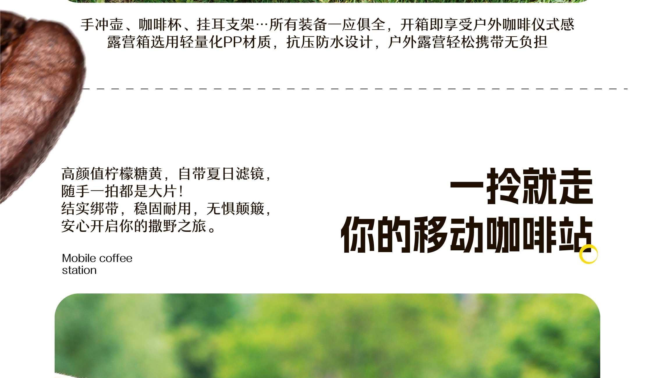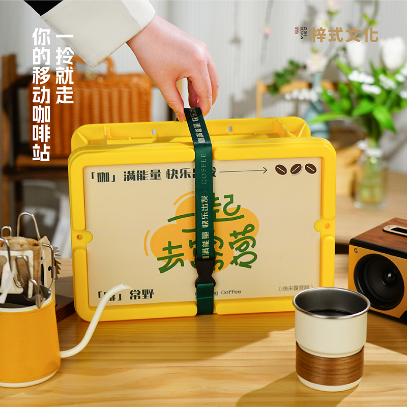 啡常野·露营咖啡礼 「咖」满能量·快乐出发 从内耗到撒野,用咖啡唤醒自由 礼盒清单 露营箱*1 握式手冲壶*1 咖啡杯*1 金属挂耳支架*1 【花开富“桂”】桂花风味挂耳咖啡10g*2片 【“玫”梦成真】玫瑰风味挂耳咖啡10g*2片 露营箱绑带*1