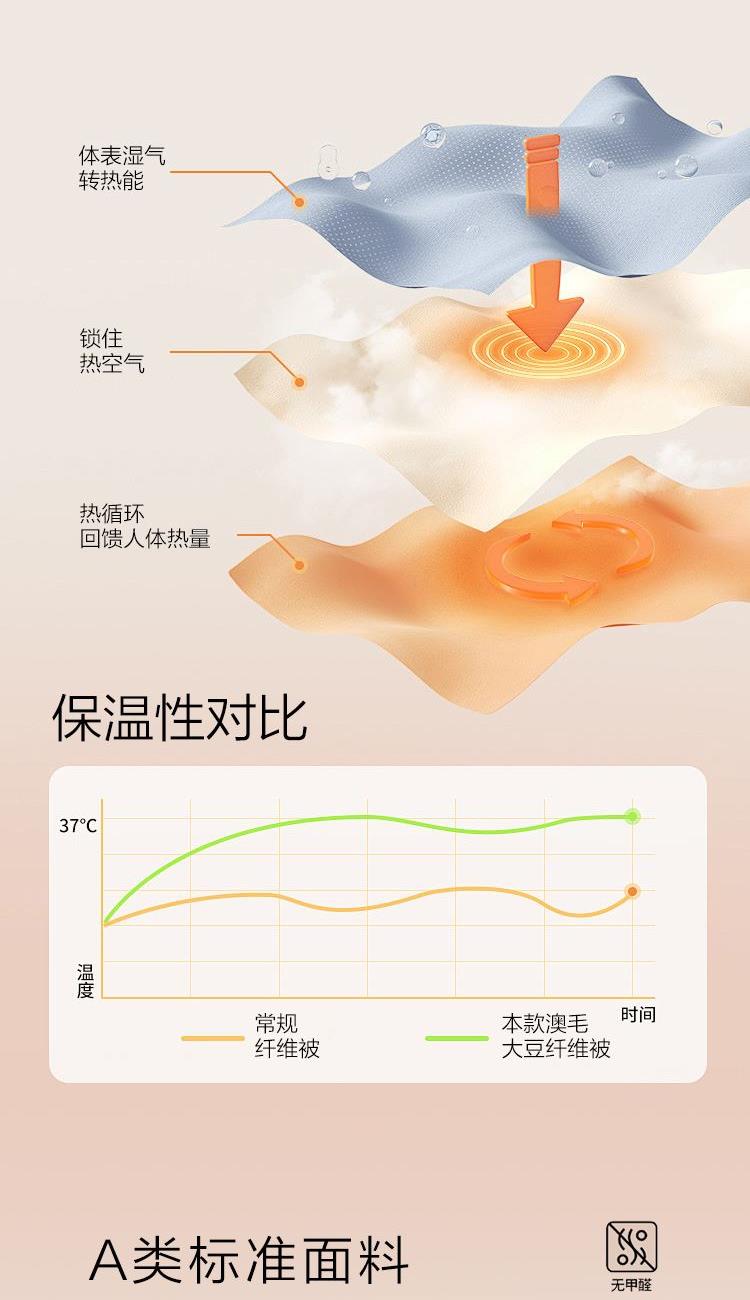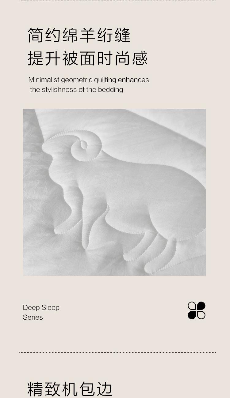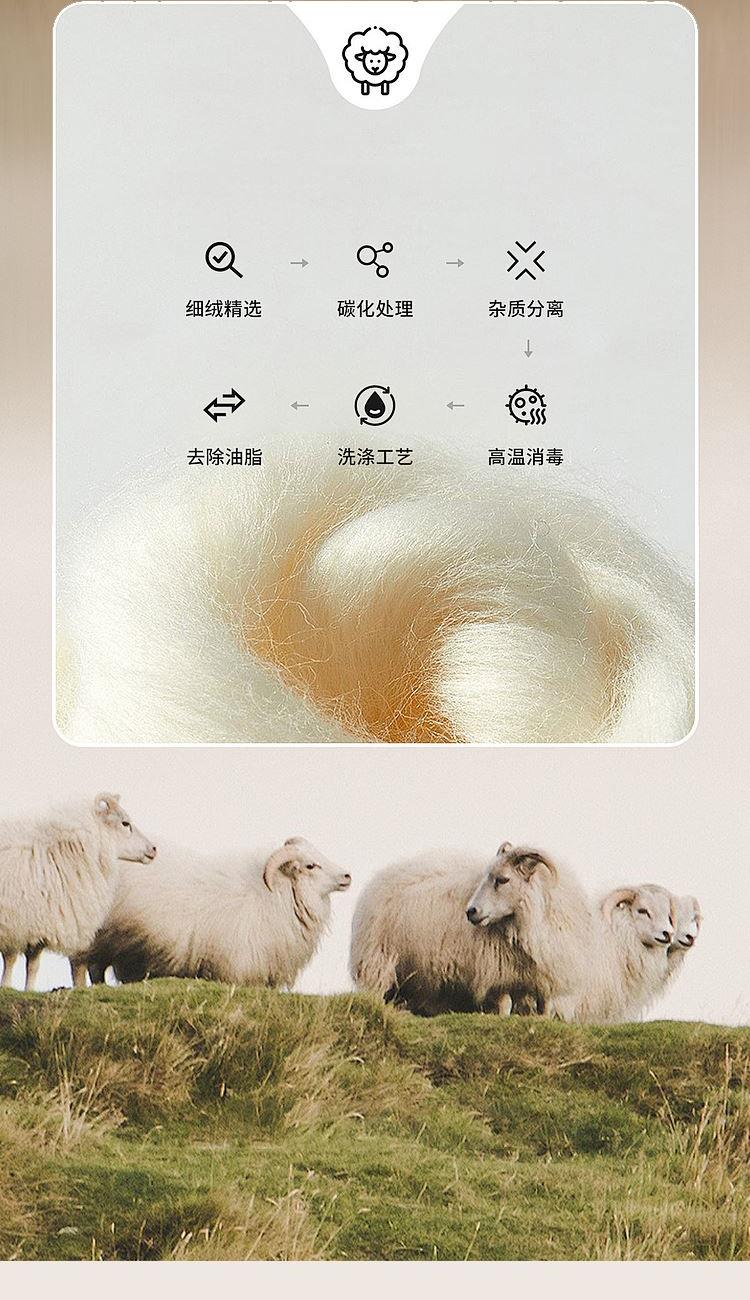 产品规格:200*230cm/2150g(填充克重) 产品材质:面料:聚酯纤维(防钻绒) 填充:绵羊毛(澳毛) 1、澳洲羊毛加厚保暖吸湿透气,绒毛蓬松柔软更舒适。聚酯纤维面料,柔软蓬松锁绒防钻。 2、洗涤除味高温等数十道工序织就健康温暖羊毛被。细腻车工走线,防止边缘脱线。