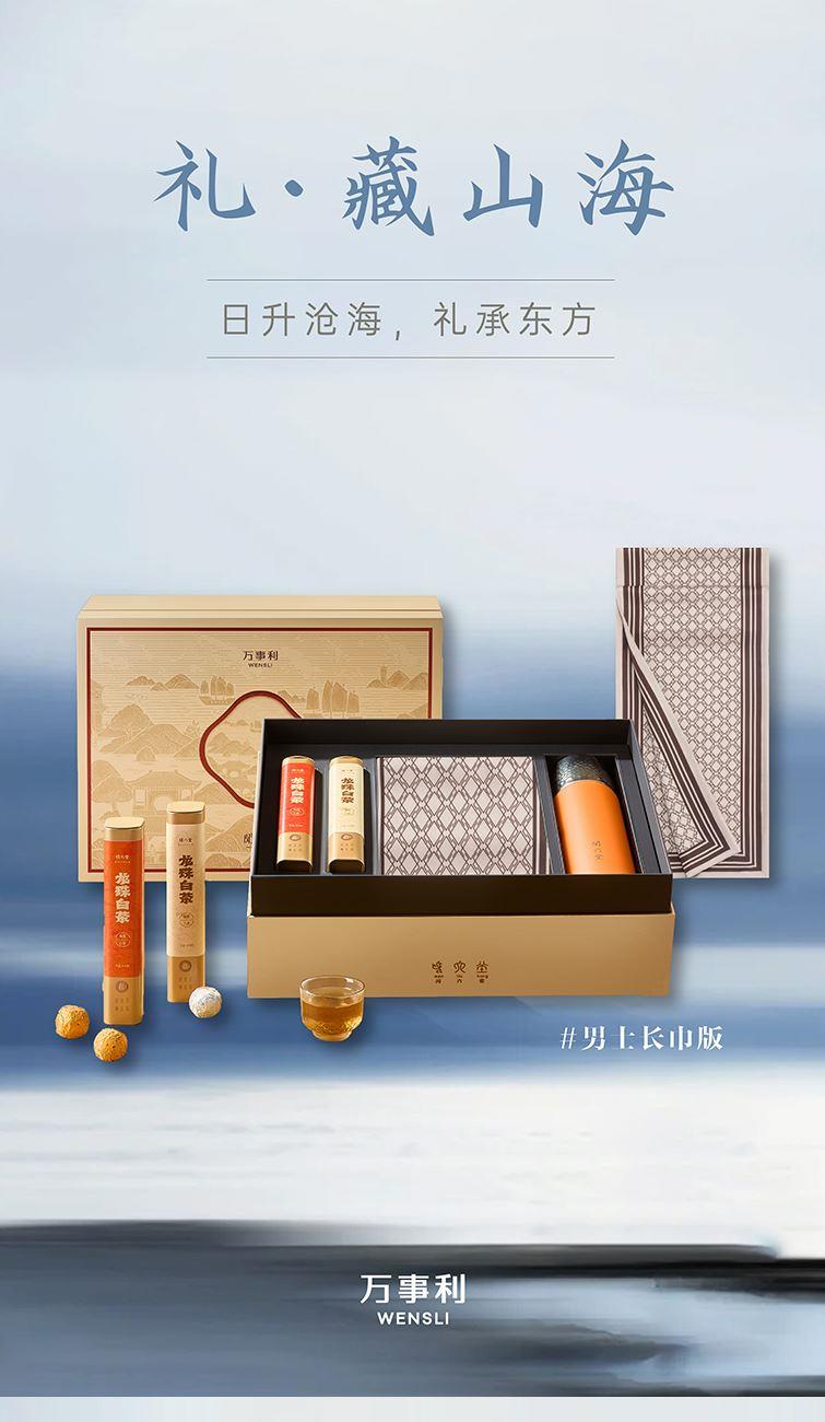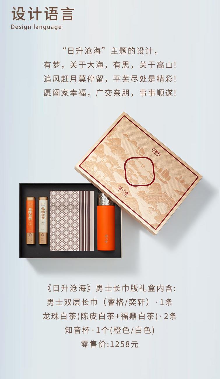 《日升沧海》男士-丝茶礼盒(长巾款)万事利专柜新品
