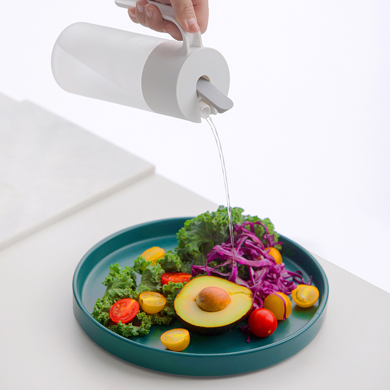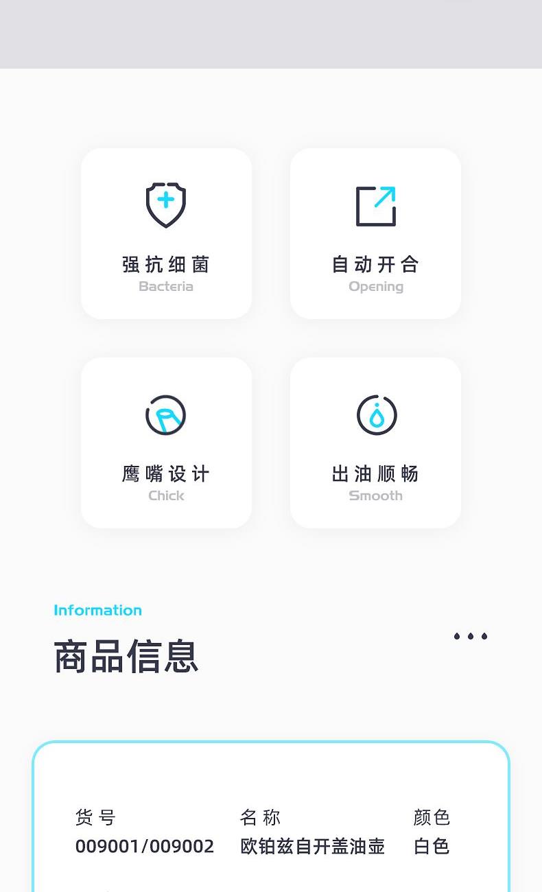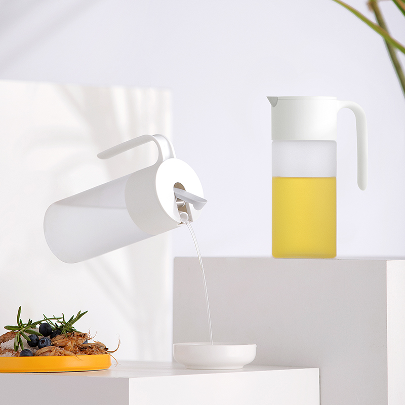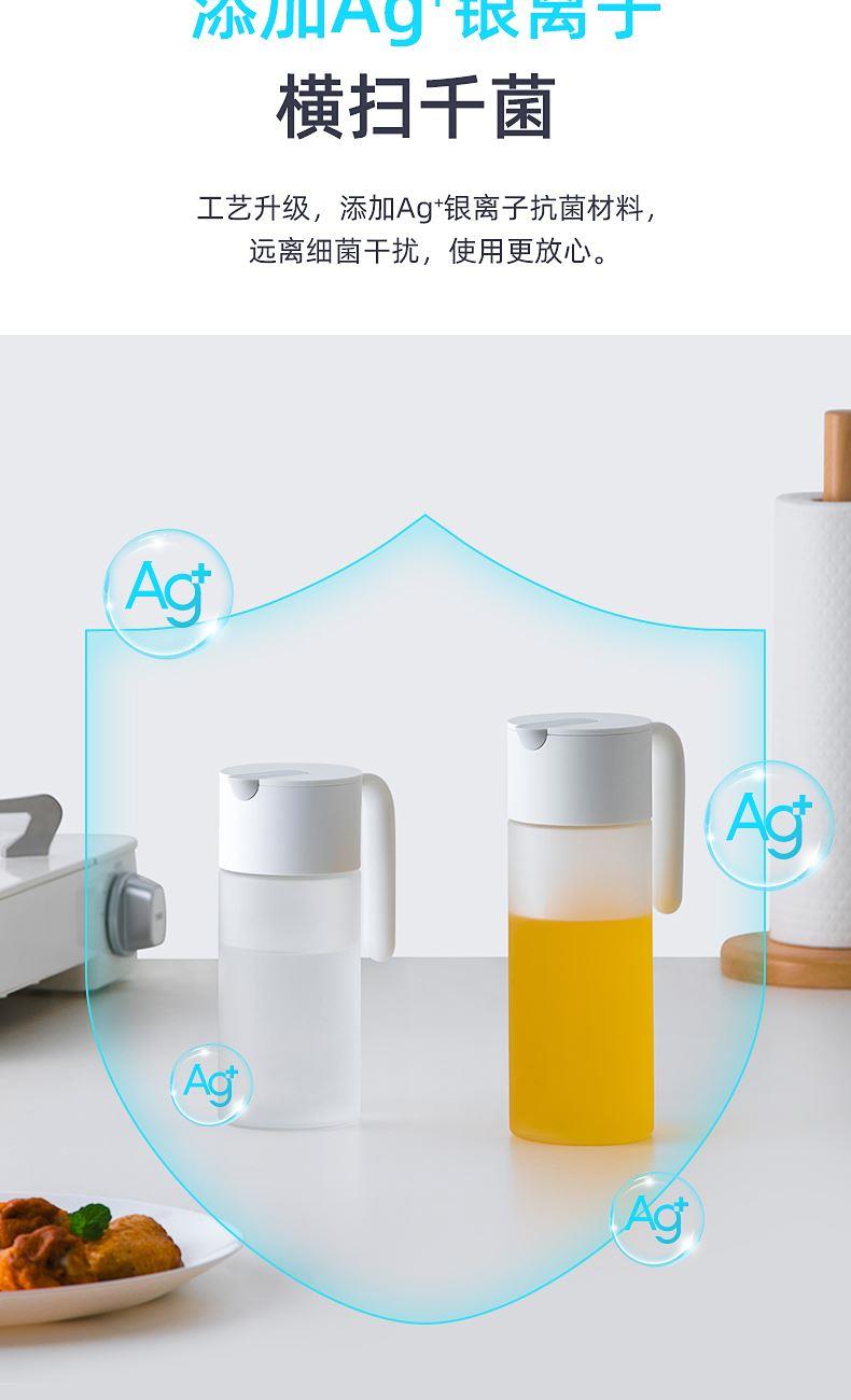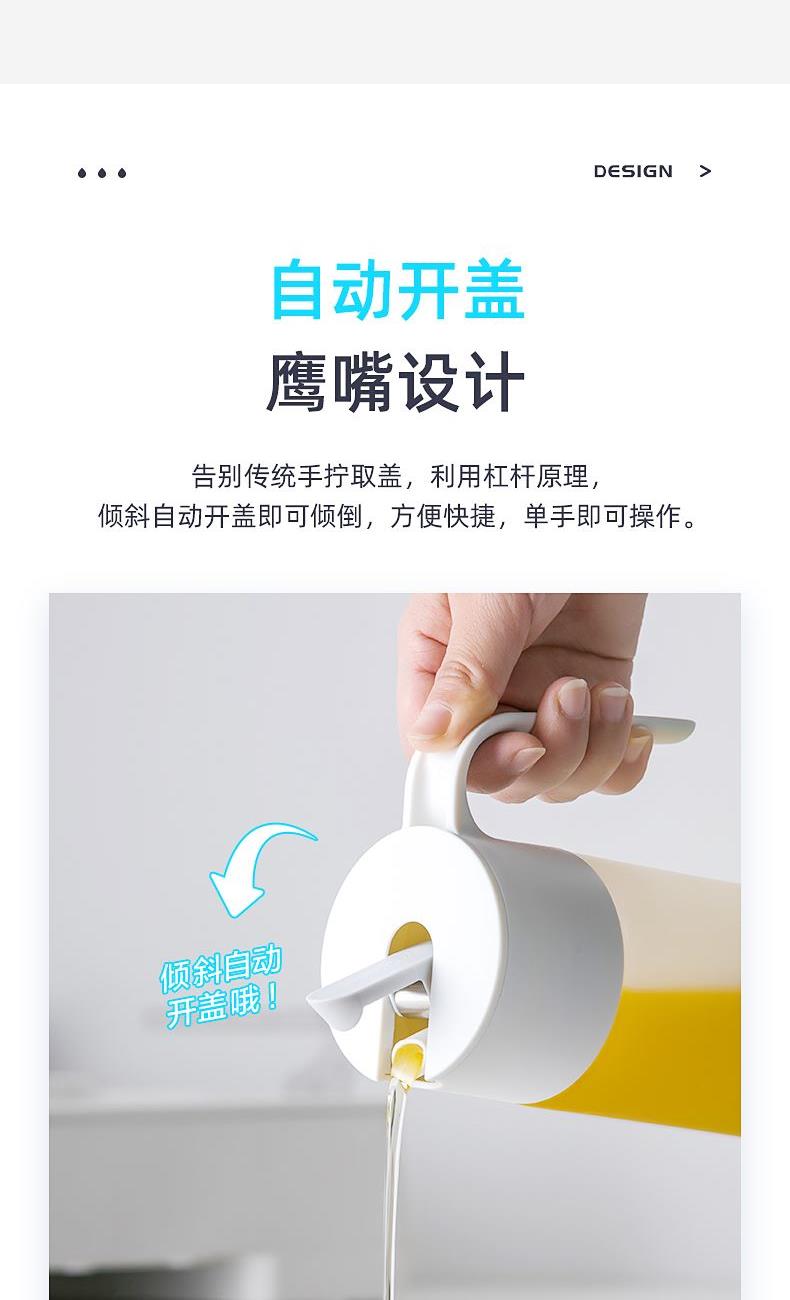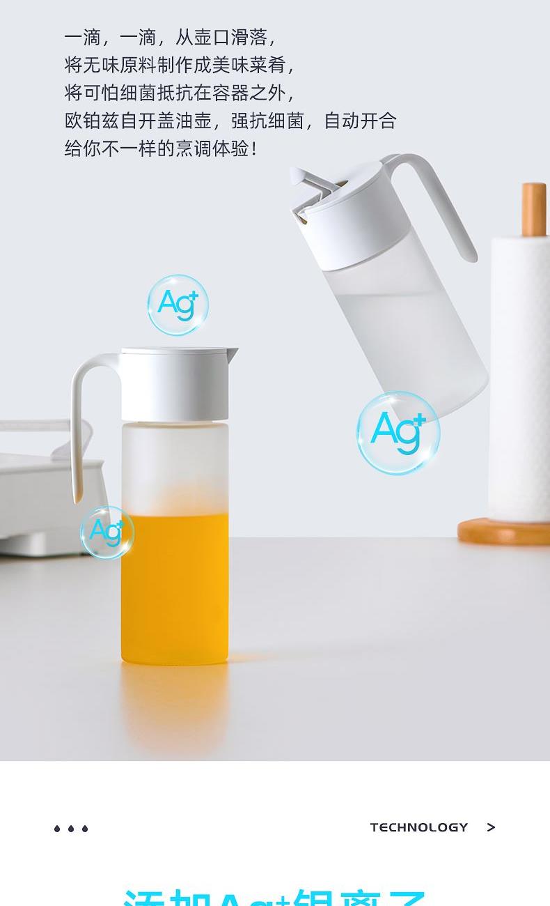产品货号:009001 产品尺寸:10.2*10.2*21.6CM 产品容量:550ml 产品材质:soda-lime glass,PP,PS,Silicone,stainless steel 产品克重:435.5g 外箱尺寸:49.5*30*45.5CM 包装方式:1 PC/COLOR BOX 产品颜色:白色 自动开合,单手可操作 钠钙玻璃瓶身,磨砂手感工艺 鹰嘴油口,不滴不漏 硅胶密封圈,有效防漏 可拆卸设计,清洗容易