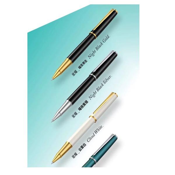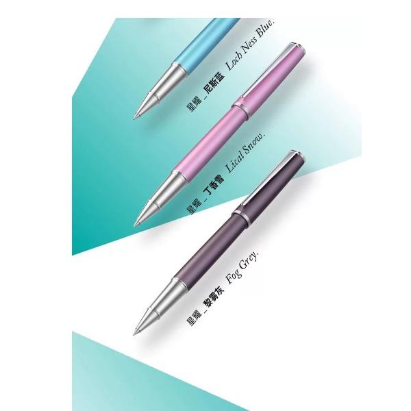 型号:星耀系列签字笔 类型:可替换芯宝珠笔 重量:墨水/宝珠笔25g/30g 颜色分类:曜夜黑金/曜夜黑银/黎雾灰/松苔绿/夜幕蓝/伦敦红/珊瑚橙/云雾白尼斯蓝/丁香雪 书写粗细:0.6mm 整笔材质:铝铜 笔盖:卡扣嵌套设计 笔握:24mm中距笔握 套餐类型:官方标配 包装方式:鸿运笔记本礼盒装 适用场景:送礼书写 适用人群:文艺青年 笔杆材质:金属笔身纹理:磨砂