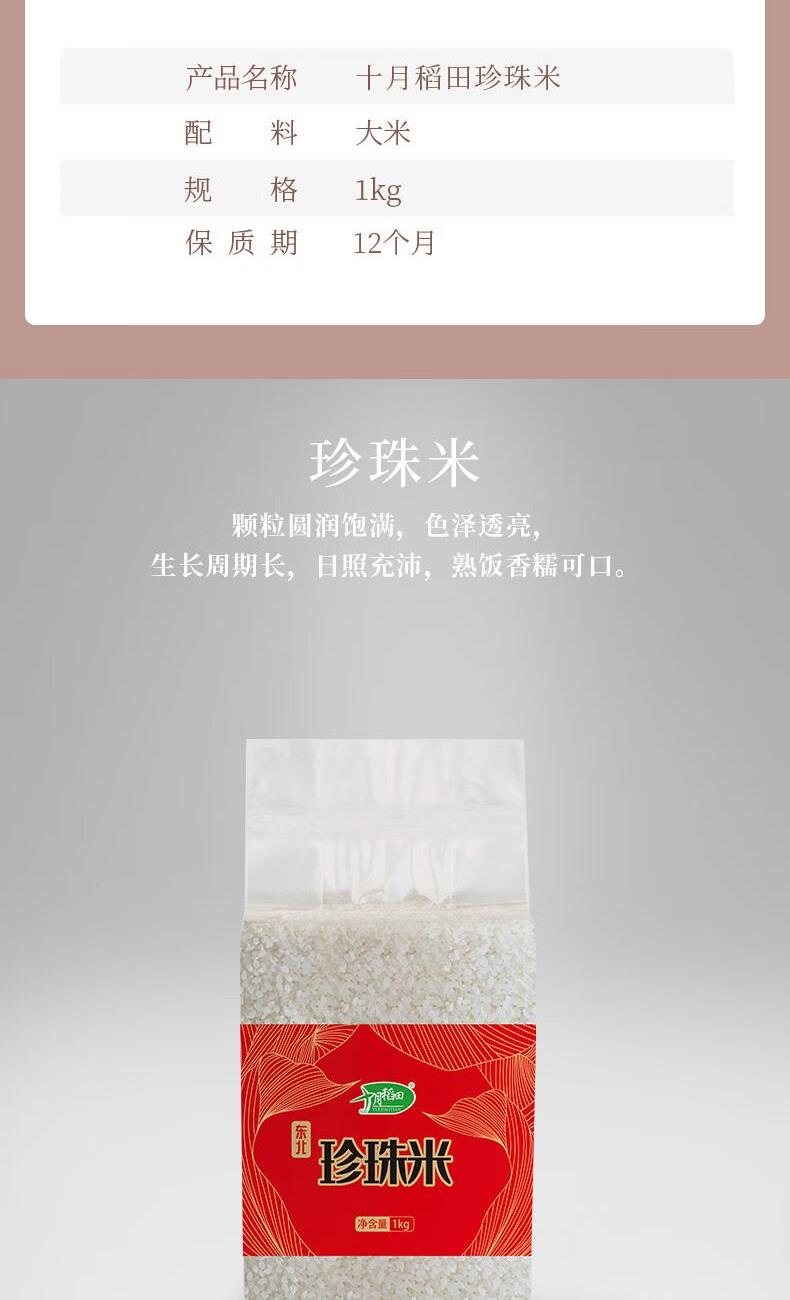 商品:十月稻田 珍珠米 规格:1kg 保质期:12个月 卖点:米粒均匀 圆润饱满 色泽透亮 香糯甜润