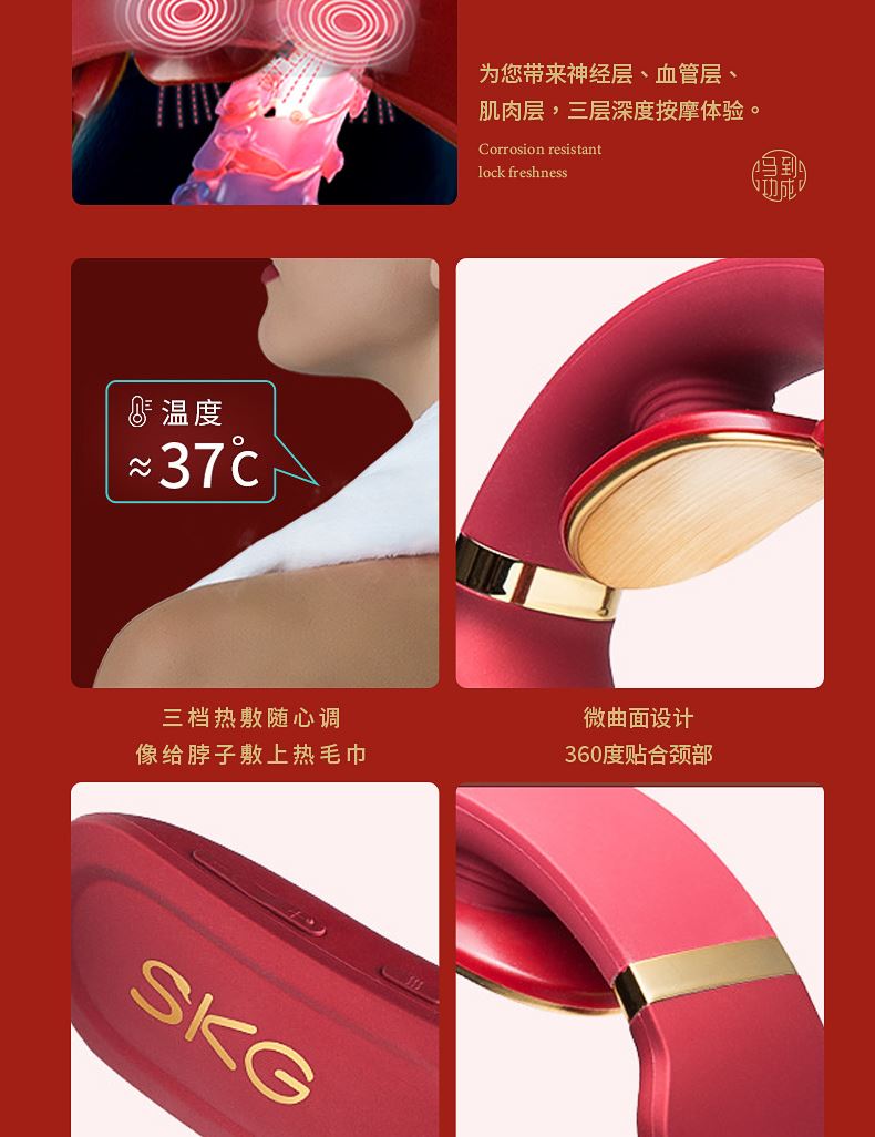 1、SKG红色颈部按摩仪是给奋斗者贴心的守护:42°恒温加热、15分钟智能 定时、900mAH(10天续航)16档力度 2、时间管理手册本:台历功能、笔记本功能、摆件功能 3、红木签字笔:书写新年 新篇章 4、新年红包*6:开启新年好运程