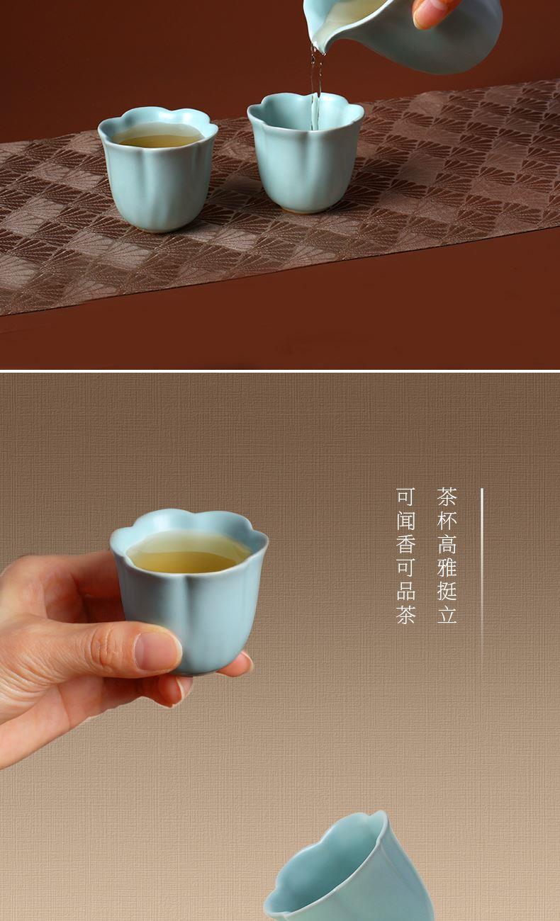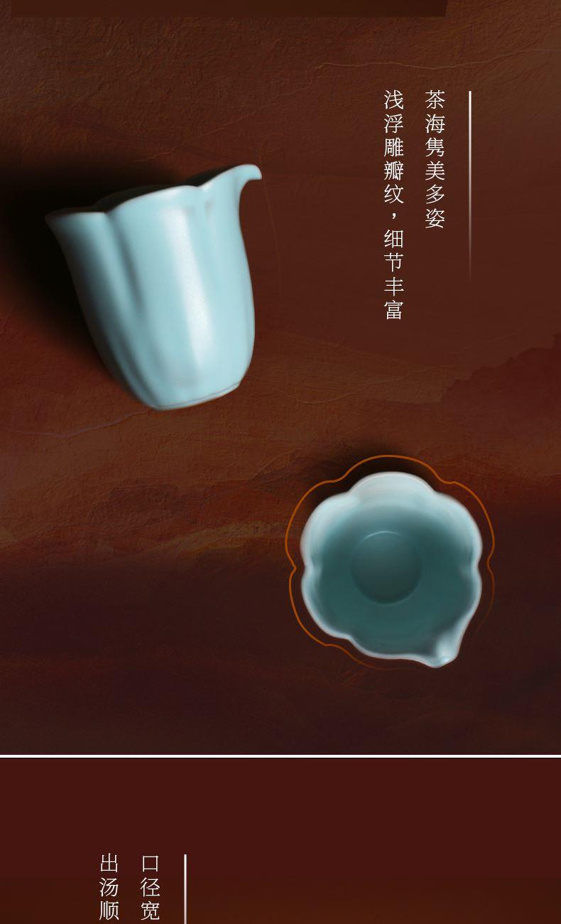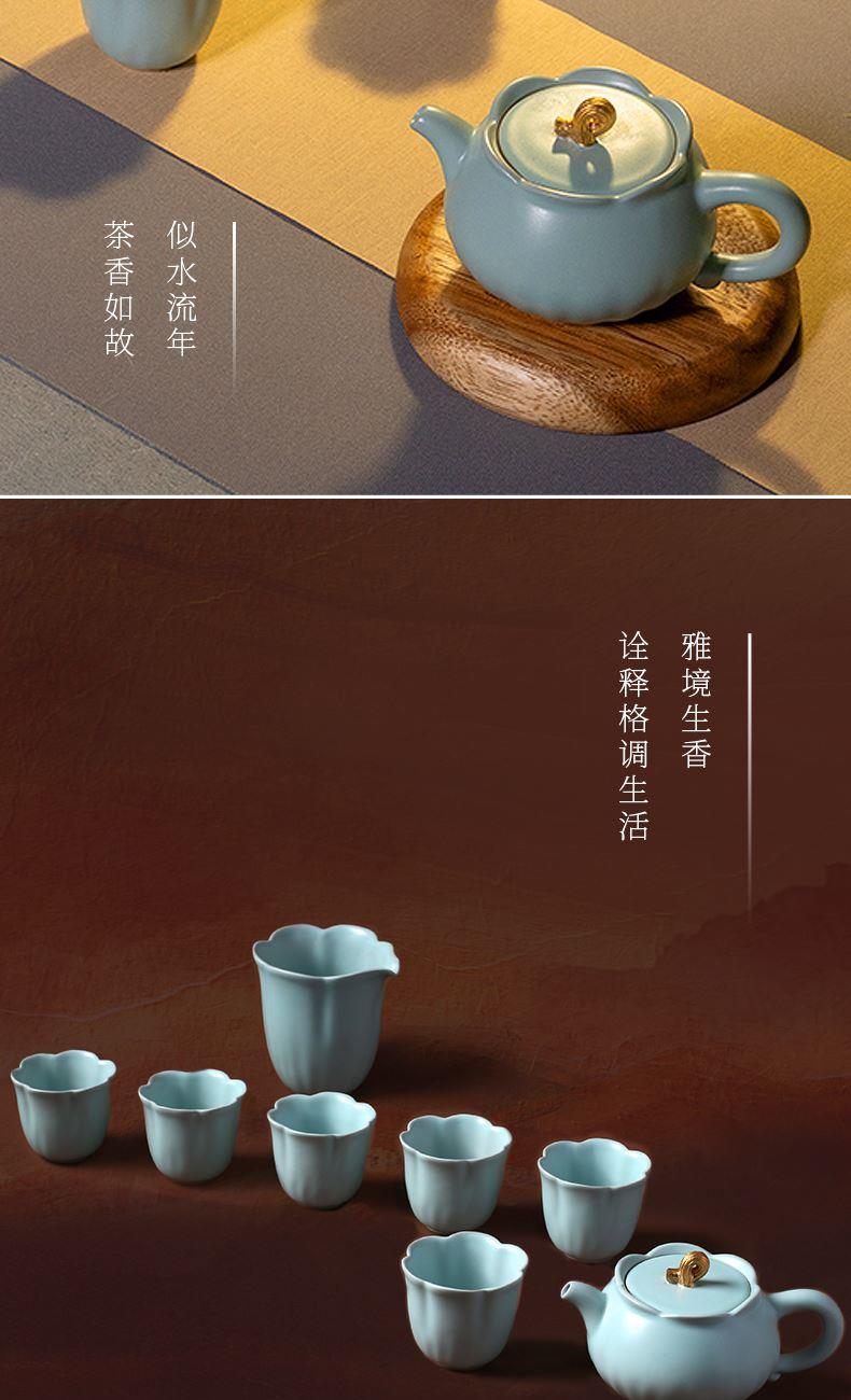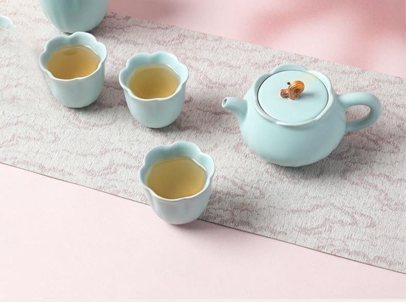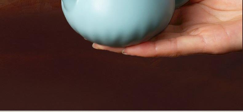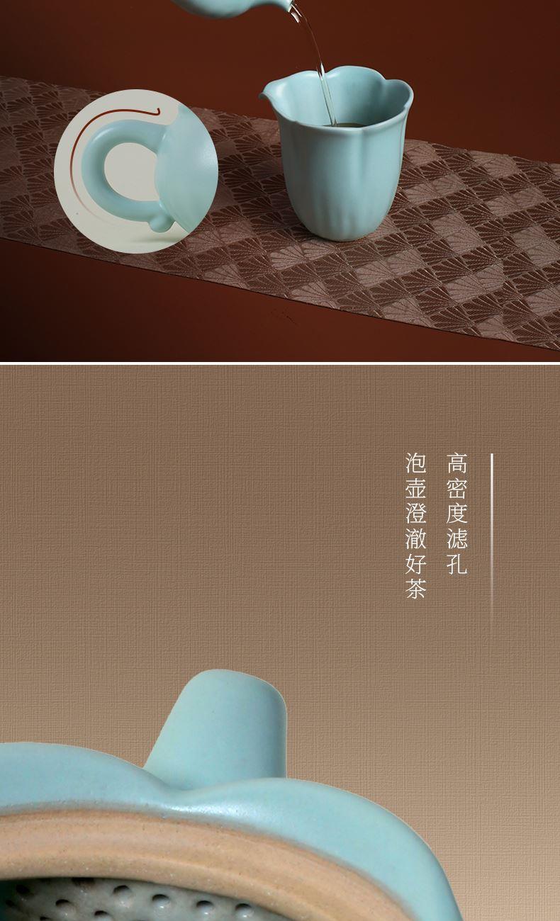 清荷雅境茶组,正是这一美学精神的凝练之作——它以荷为形,借天青釉勾勒出东方意境的优雅风骨,又以真金手描点缀,赋予其奢华内敛的气质。执壶品茗,茶香氤氲,是对复古雅奢美学的细细品味,更是对现代精致生活的执着追求。 规格:壶×1,海×1,杯×6,活水球×1 颜色:天青色 容量:壶170ml