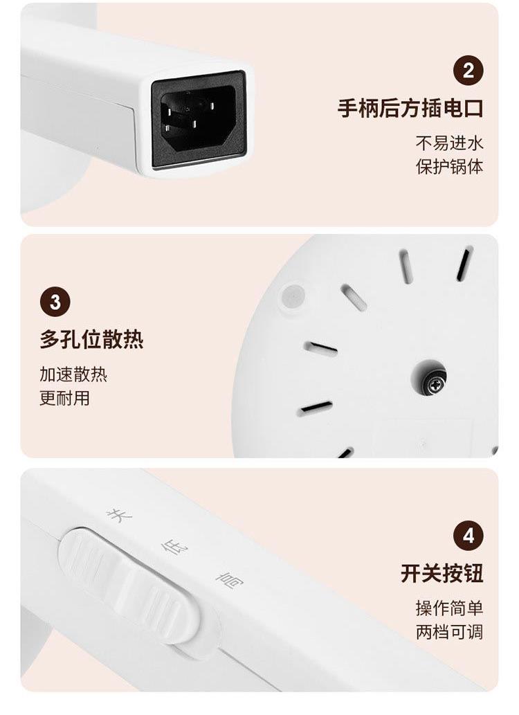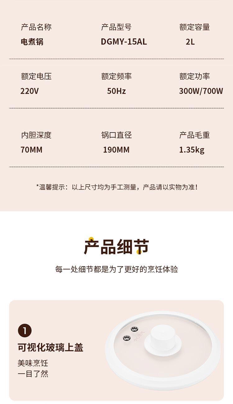 涂层材质:陶瓷釉 锅面直径:20cm 容量:2L 认证型号:DGMY-15AL 颜色:白色系 档位:2档 额定电压:220V 电源线长:1m 额定功率:700W 类型:多功能锅 特征特质:保温 烤涮两吃 操控方式:机械式