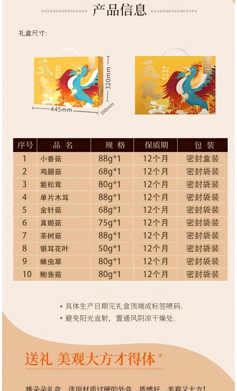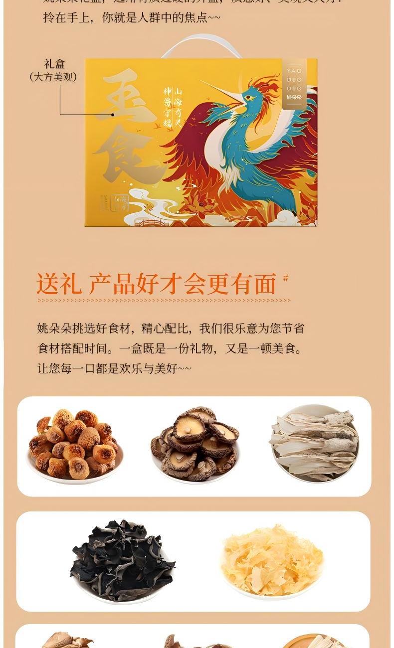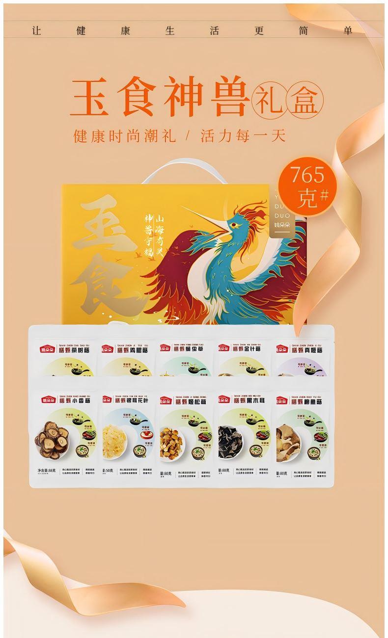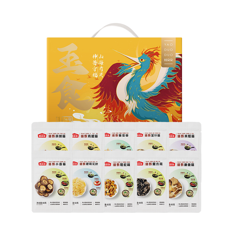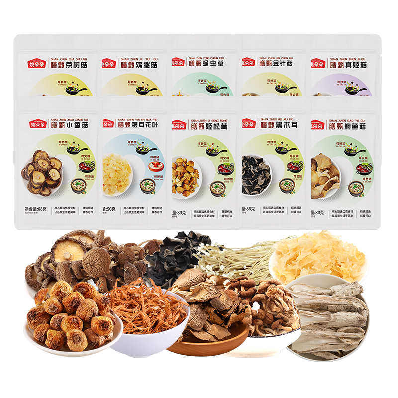 姚朵朵小香菇88克 姚朵朵鸡腿菇68克 姚朵朵姬松茸80克 姚朵朵单片木耳88克 姚朵朵金针菇68克 姚朵朵真姬菇75克 姚朵朵茶树菇88克 姚朵朵银耳花叶50克 姚朵朵蛹虫草80克 姚朵朵鲍鱼菇80克 玉食神兽礼盒