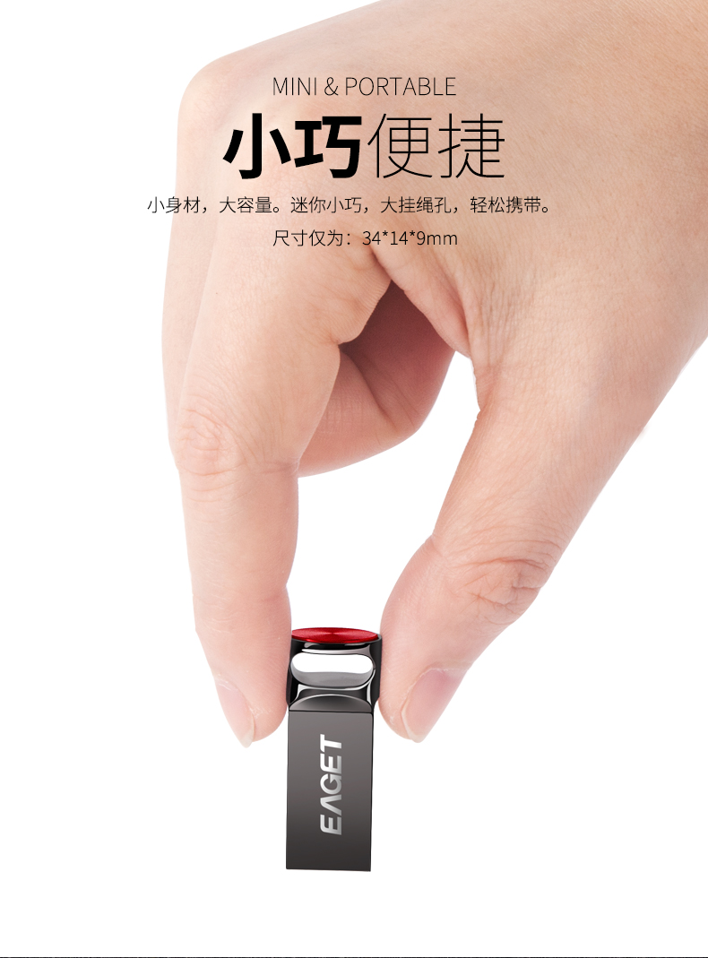 USB3.0接口 全金属设计,质感超群 小巧便携,个性化设计 UDP芯片,防水防震 原装A+级芯片,品质稳定 3.0高速传输,超强兼容 支持定制,满足个性化需求 产品尺寸:34*14*9mm 包装尺寸:11.3*9cm 单品重量:5g